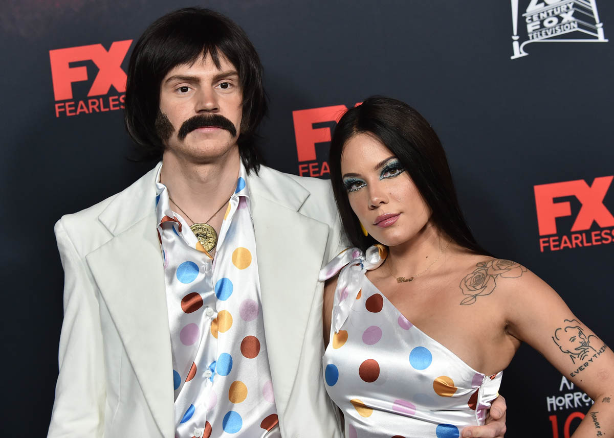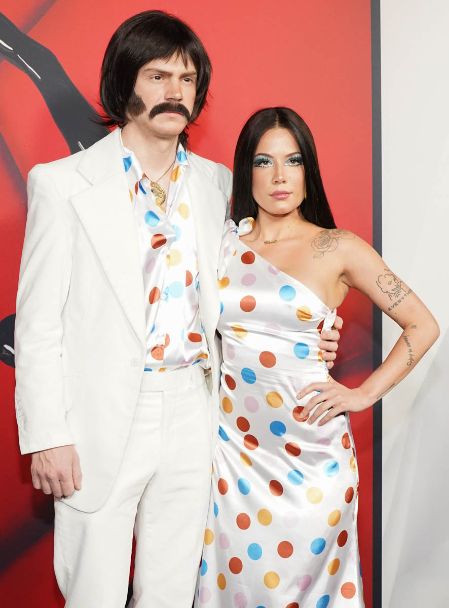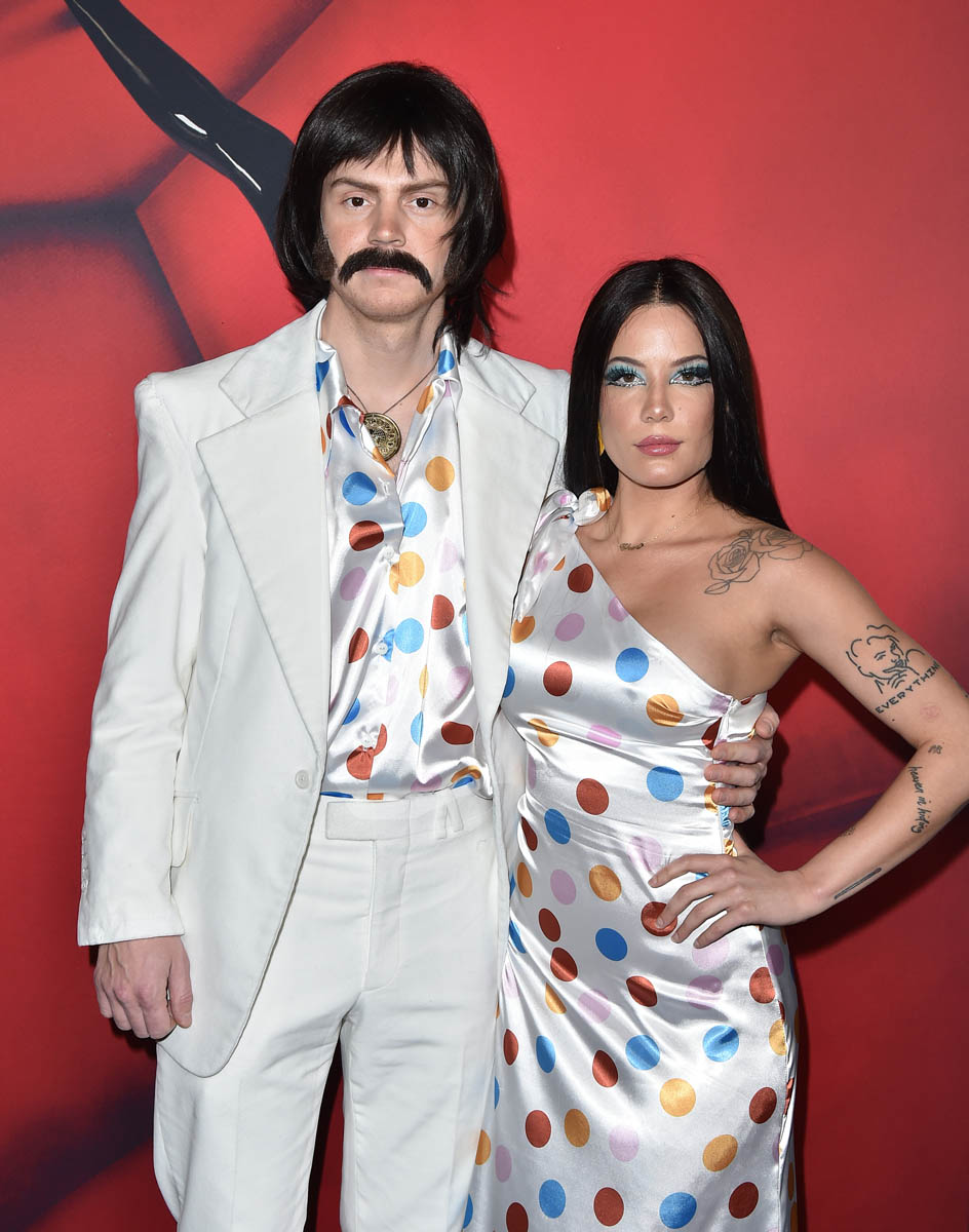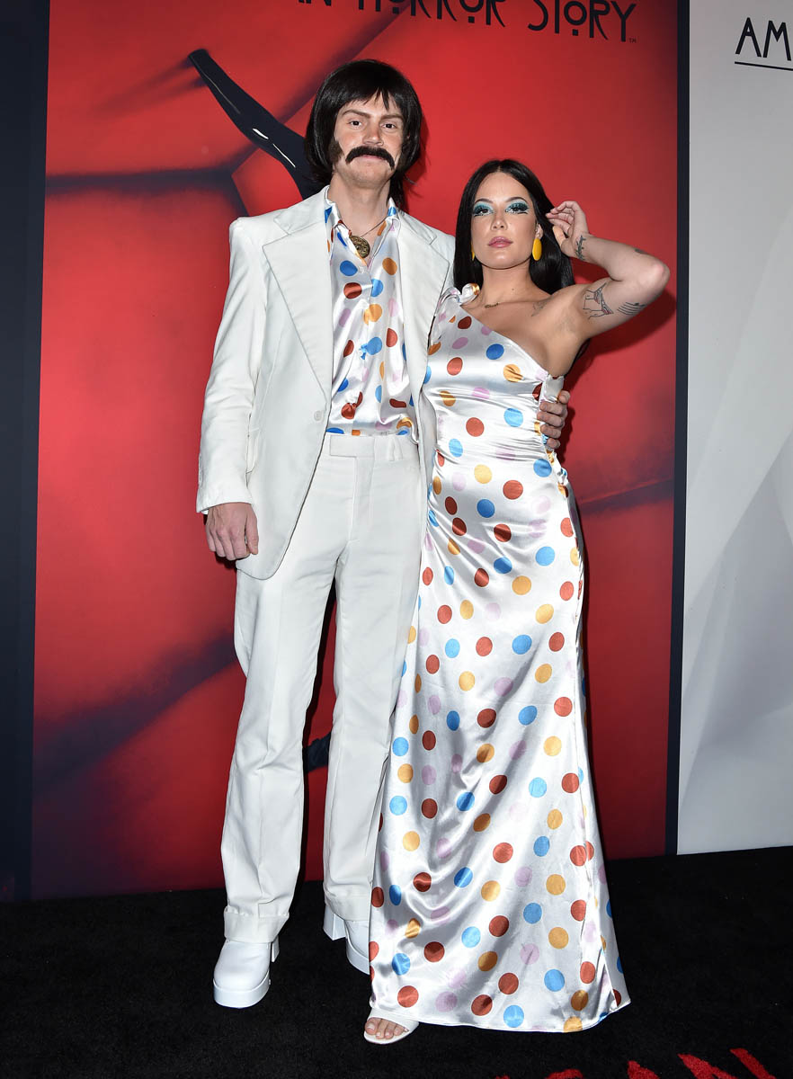 Evan Peters and Halsey made it red carpet official in a couple’s costume (Sonny and Cher), but kind of buried the Insta official photo (it’s the second post, second photo).