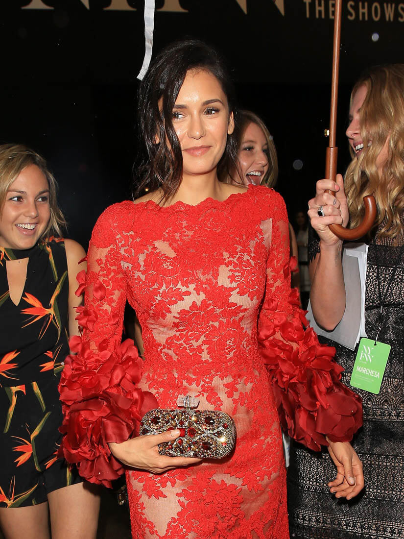 I hate Nina Dobrev’s red Marchessa dress.