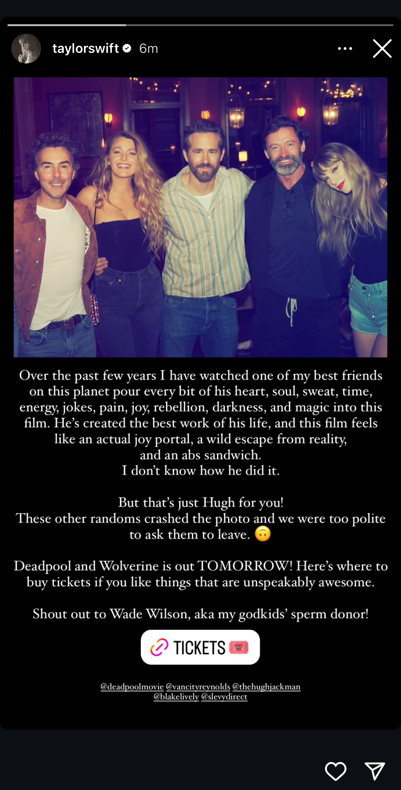 Taylor Swift posted an effusive Deadpool promo for tomorrow and now the Swifties have their marching orders. Did Sarah account for that in her box office prediction?