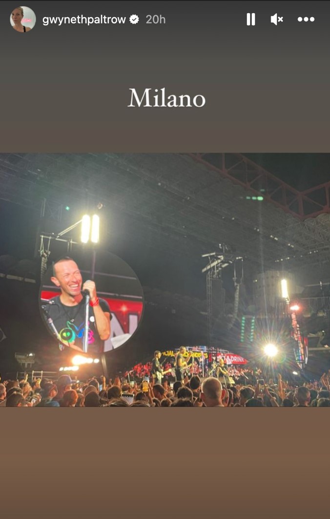 Gwyneth Paltrow posted from the Coldplay show in Milan and she got a jump on the LA migration to Italy this year. She is there with Brad and Moses was with Chris Martin and Dakota Johnson and it looks like they met up for the concert and Moses is now with Gwyneth. A nice little family vacation, minus Apple. School must be out, but maybe she’s interning somewhere this year?