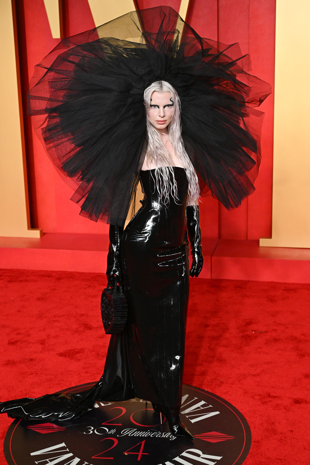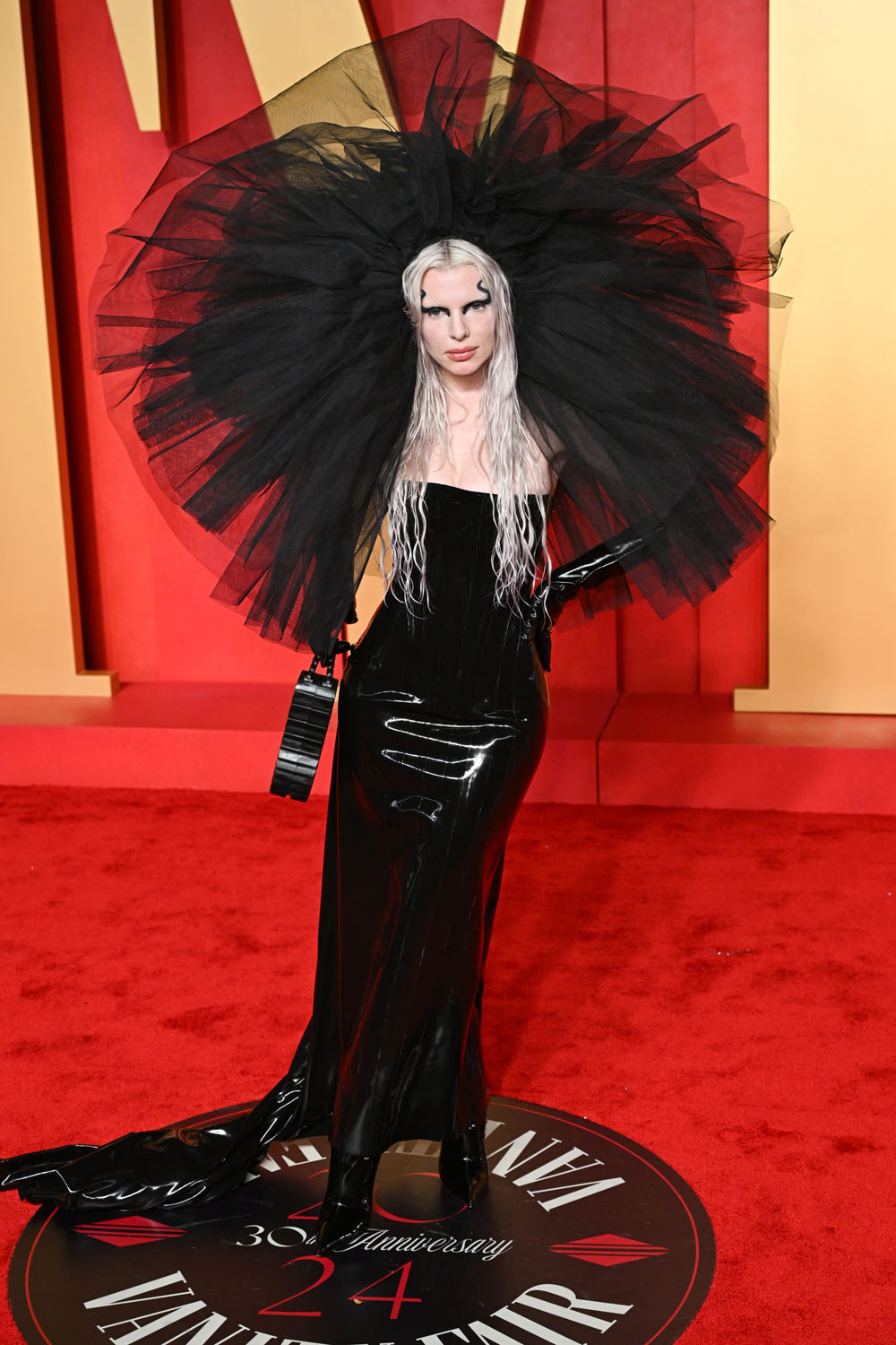 Julia Fox wore D2 to the Elton John AIDS Foundation viewing party and this dress is very Julia but it looks so hard on the nipples. She changed for the Vanity Fair party.