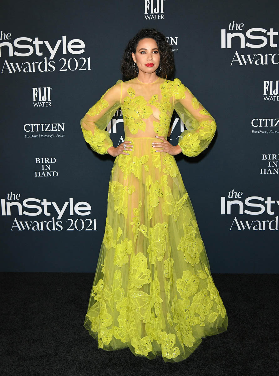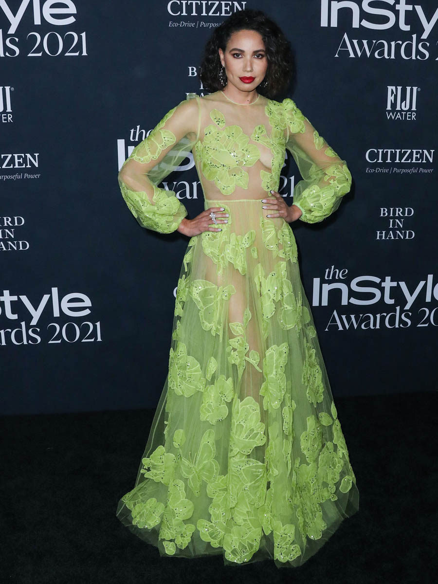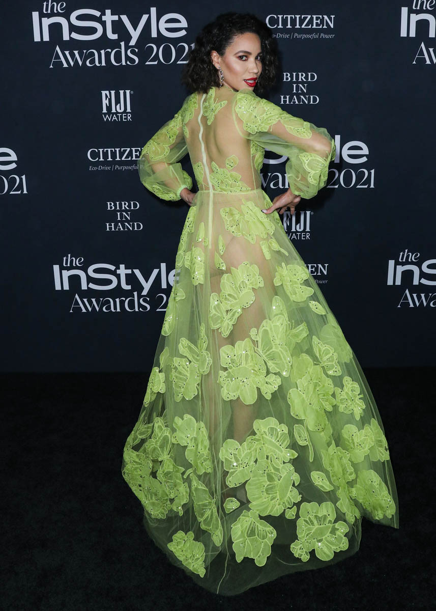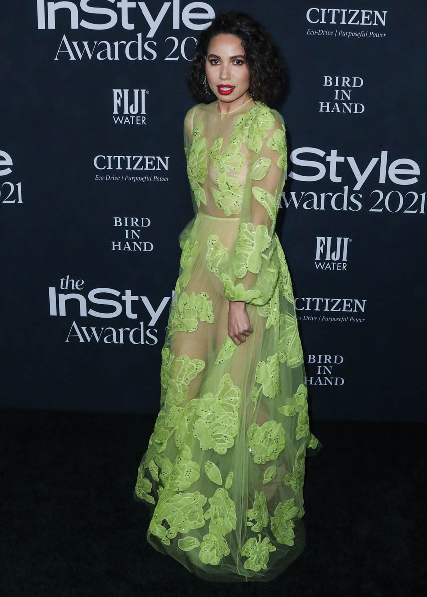 Lainey picks the outfit of the week and I want to nominate someone – Jurnee Smollet in Valentino. The floral mixed with the sheer and the colour, so beautiful on her.