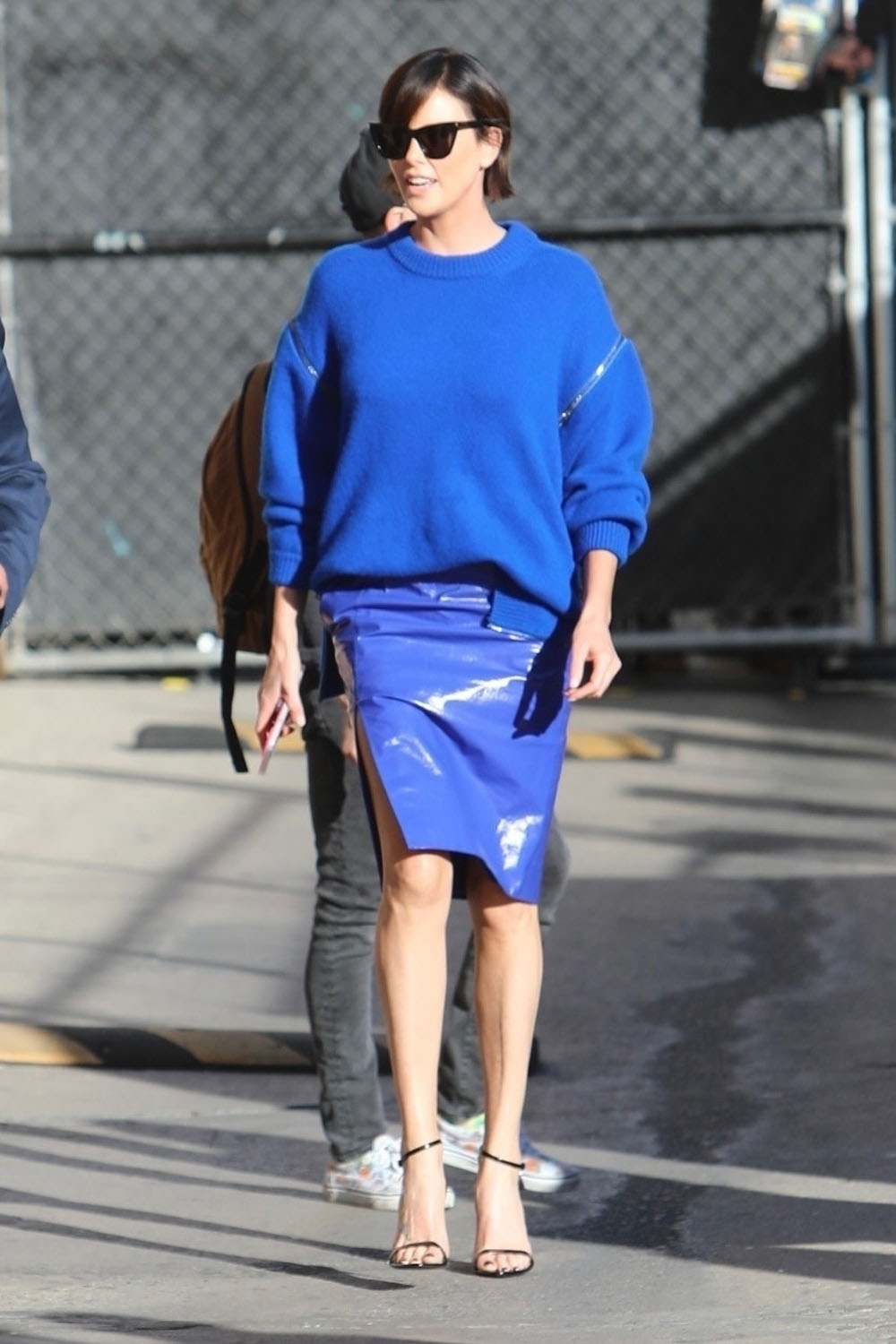 I’ll admit my bias when it comes to Charlize Theron because she can do no wrong in my eyes, the quintessential hot bitch. This Tom Ford look – the balloon sweater and skirt is so good and she looks amazing. But did the stylists not account for the camera angle? In the clip, Charlize has to pull down on the skirt because of the split. Standing up, it’s a great skirt but maybe a bit restrictive for sitting on a couch.