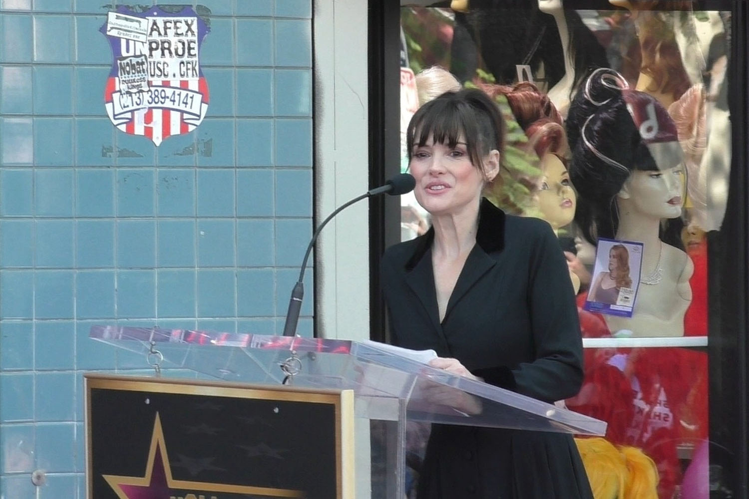 Here is Winona at Tim Burton's Walk of Fame ceremony yesterday in LA.