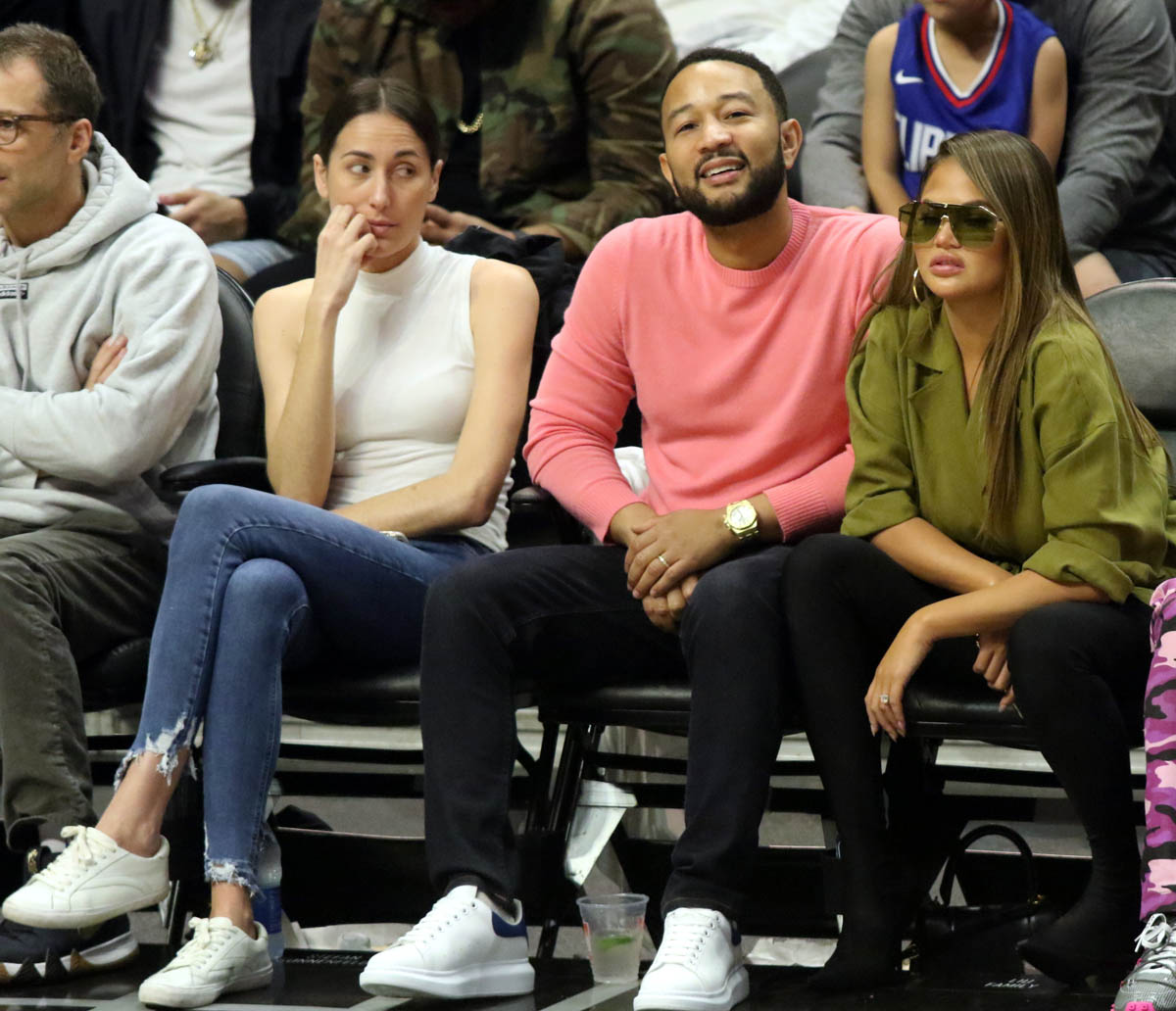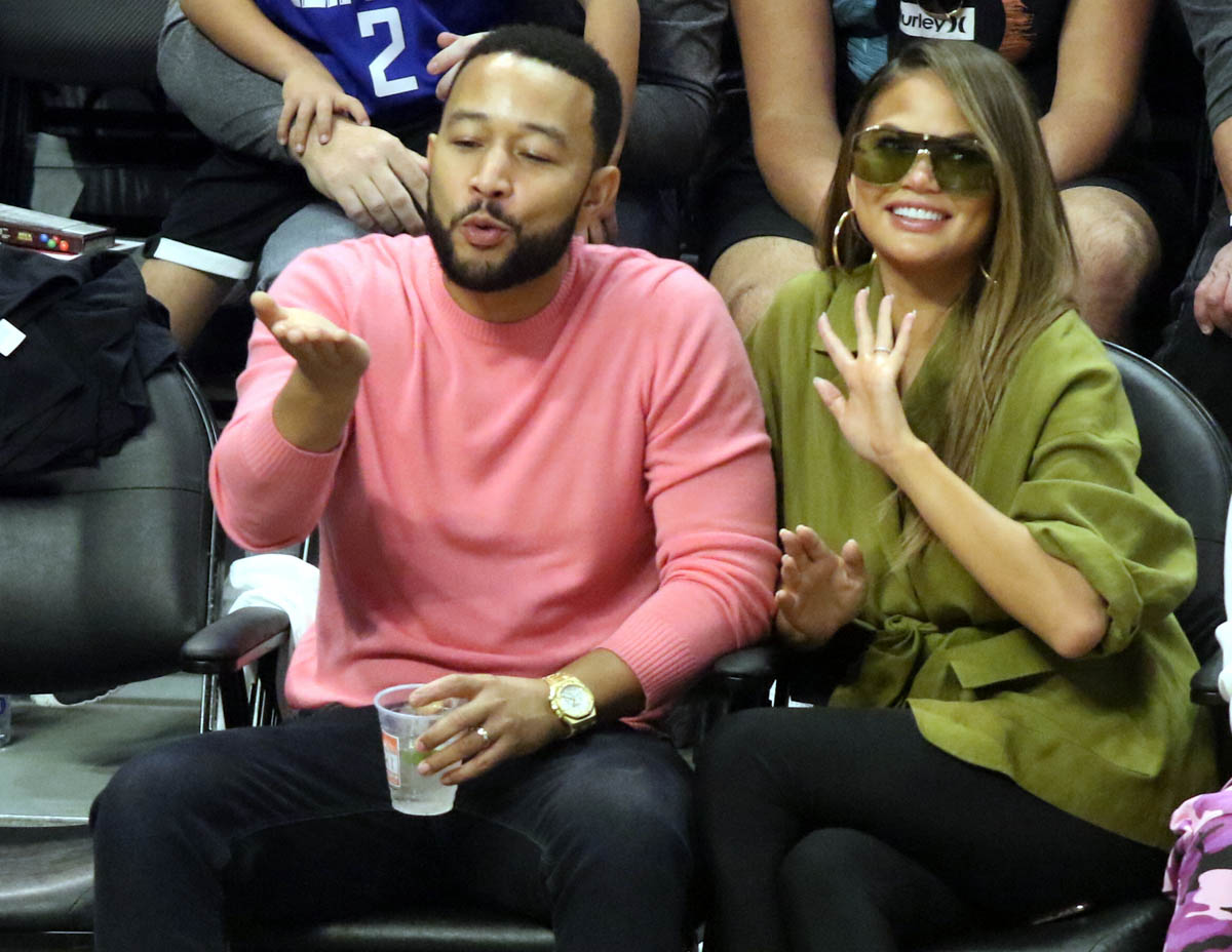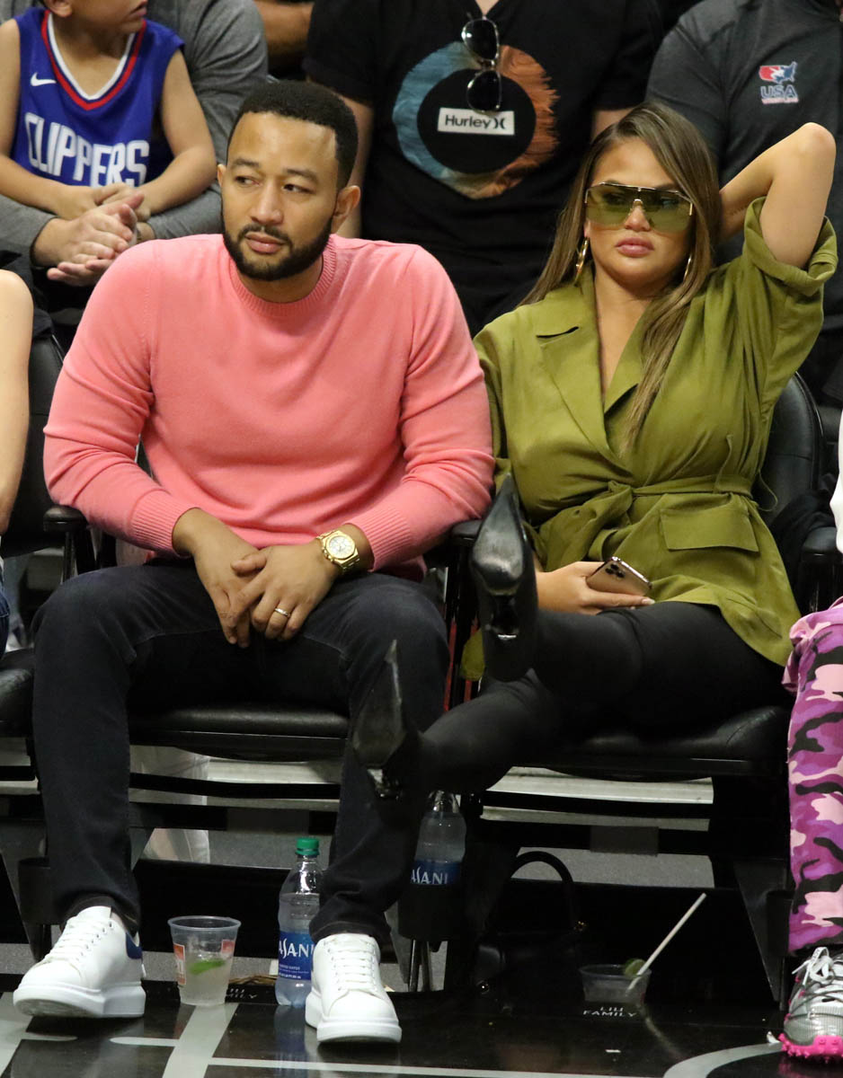 Attached - Chrissy Teigen and John Legend at a basketball game in LA earlier in March.