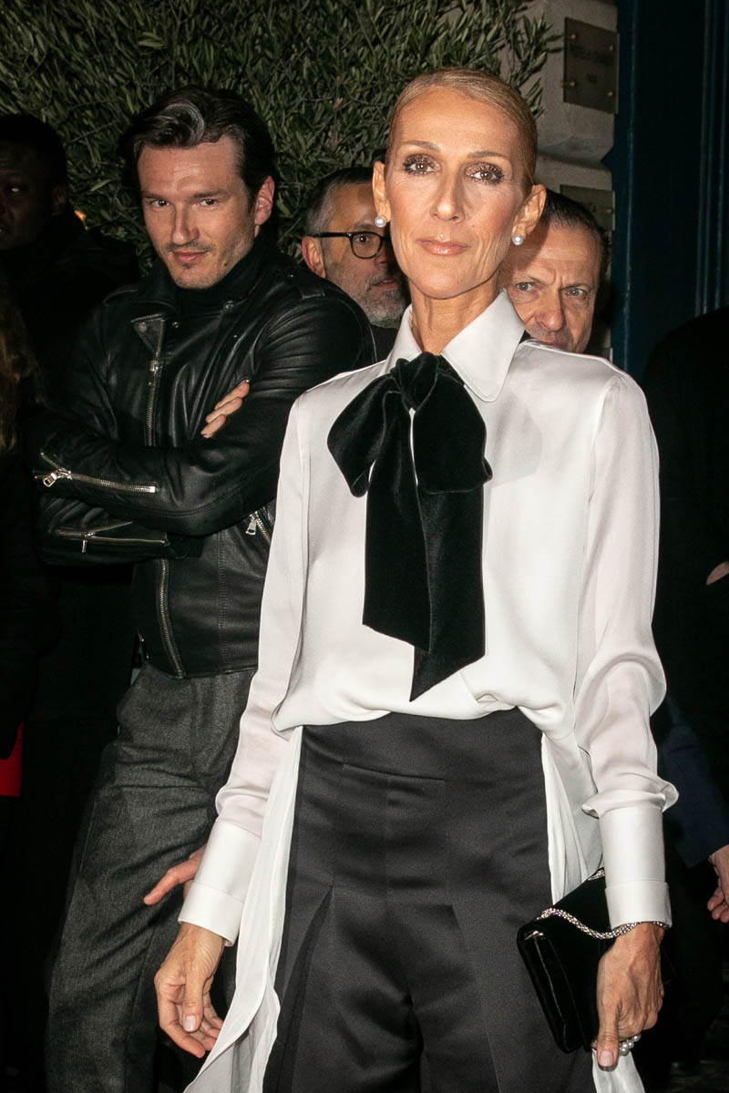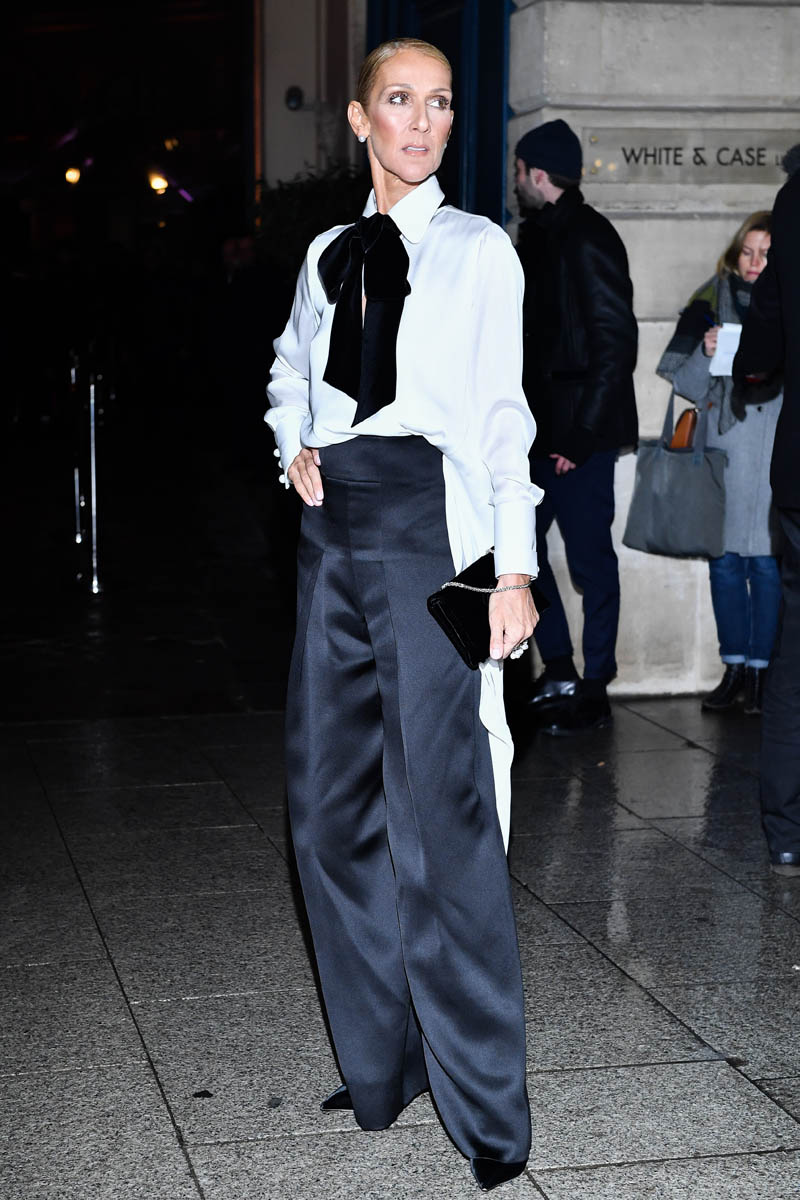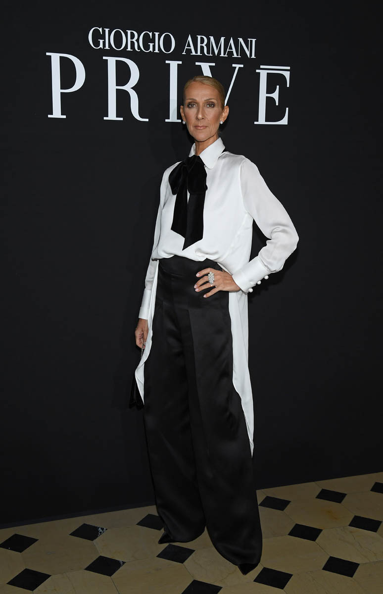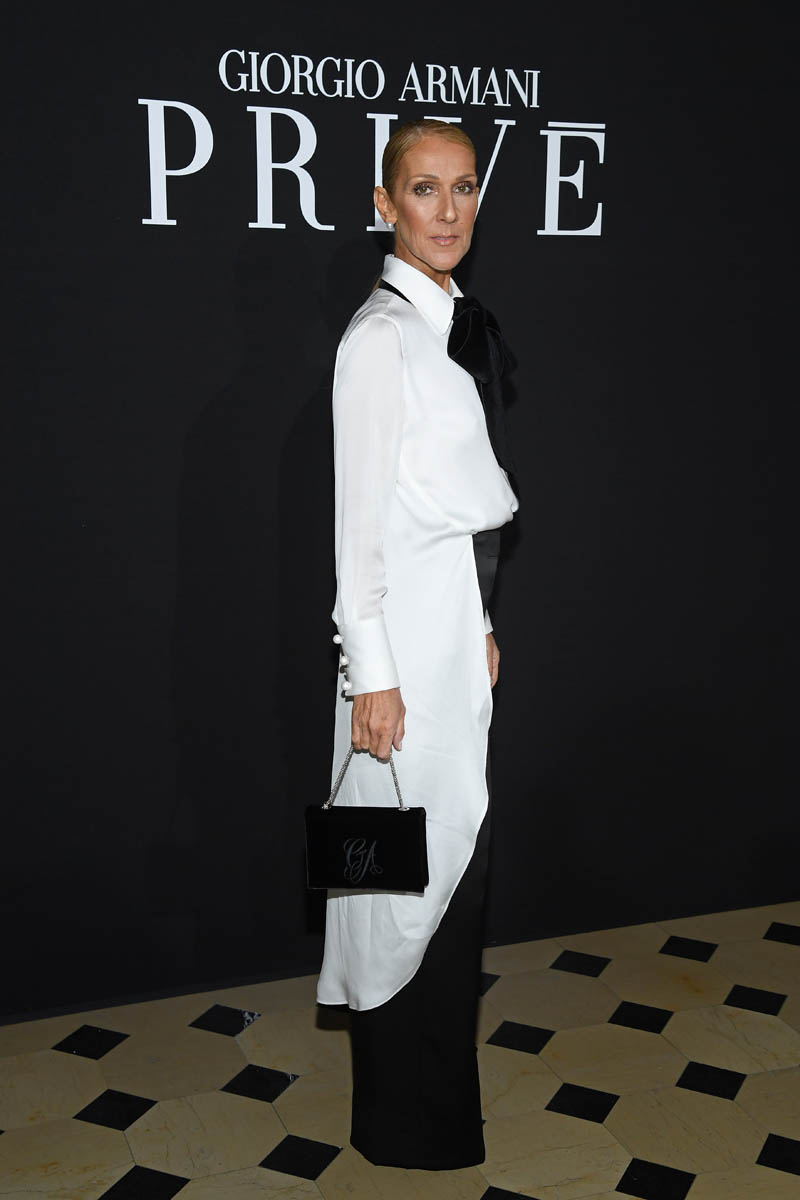 Celine was at two shows yesterday – Alexander Gauthier and Armani Privé. It was a black and white theme for both. At Alexander Gauthier she wore a slinky black dress, gave us her leg, and basically did the most. As always. Drama!