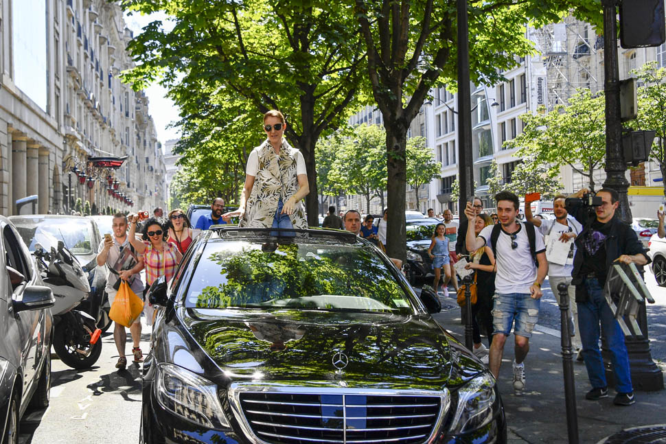Celine in Paris has been the Miracle Joy. (She loves miracles. She talks about miracles like Mimi talks about moments.) Almost every single day, Celine has brought the Miracle Joy as soon as she steps out of her hotel – in the form of her outfits, is her expressions, and now, today, with her car.