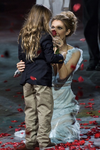 And only Celine Dion could screw her face into these expressions without bursting out laughing. I’m particularly fond of the shot of Celine presenting a rose to her son Rene Charles. Look into her eyes. Can you feel the miracle of love?