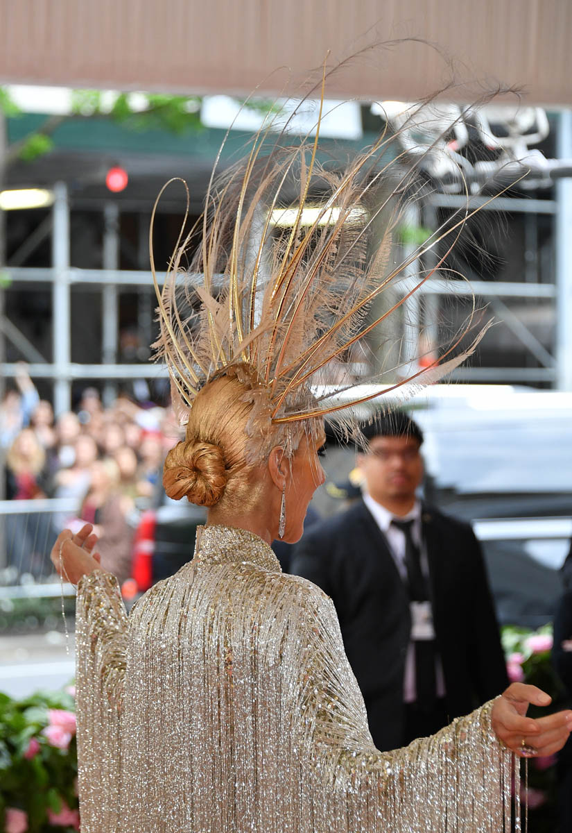 Was Celine’s outfit Camp? Yes. Our friend Lorella compared it to homemade spaghetti. Was the headpiece absurd? Yes, again. It looked like a balding bird, that qualifies. The real Camp when it comes to Celine though is … well… just Celine. She could have worn the most basic, most generic strapless column dress and she still would have been on theme. Celine doesn’t have to know what Camp is to actually BE Camp: