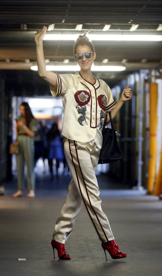 And this is Celine, this morning, in a pink Gucci, distributing waves and air kisses to the paps and fans waiting outside the hotel. Look at her! There’s never an off day! Every day she comes prepared to give! This woman. This woman stood for 8 hours – maybe even more – at her husband’s funeral, personally greeting every single person who came to pay their respects. There’s really no one else like her.