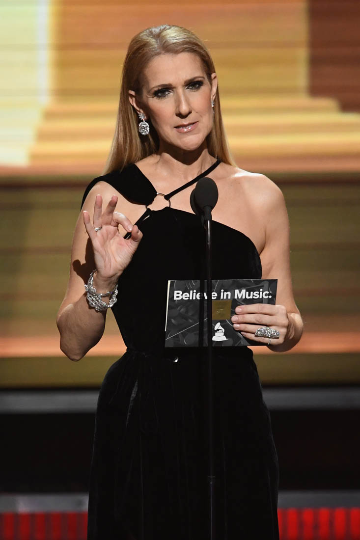 Celine presenting Song of the Year to Adele was two minutes of essential Celine. My Heart Will Go On playing as she took the stage? That’s pure Celine. Celine remembering her late husband and basically telling us that THERE WILL NEVER BE ANOTHER? Pure Celine. Celine’s voice cracking has she whisper-announces “Hello”?