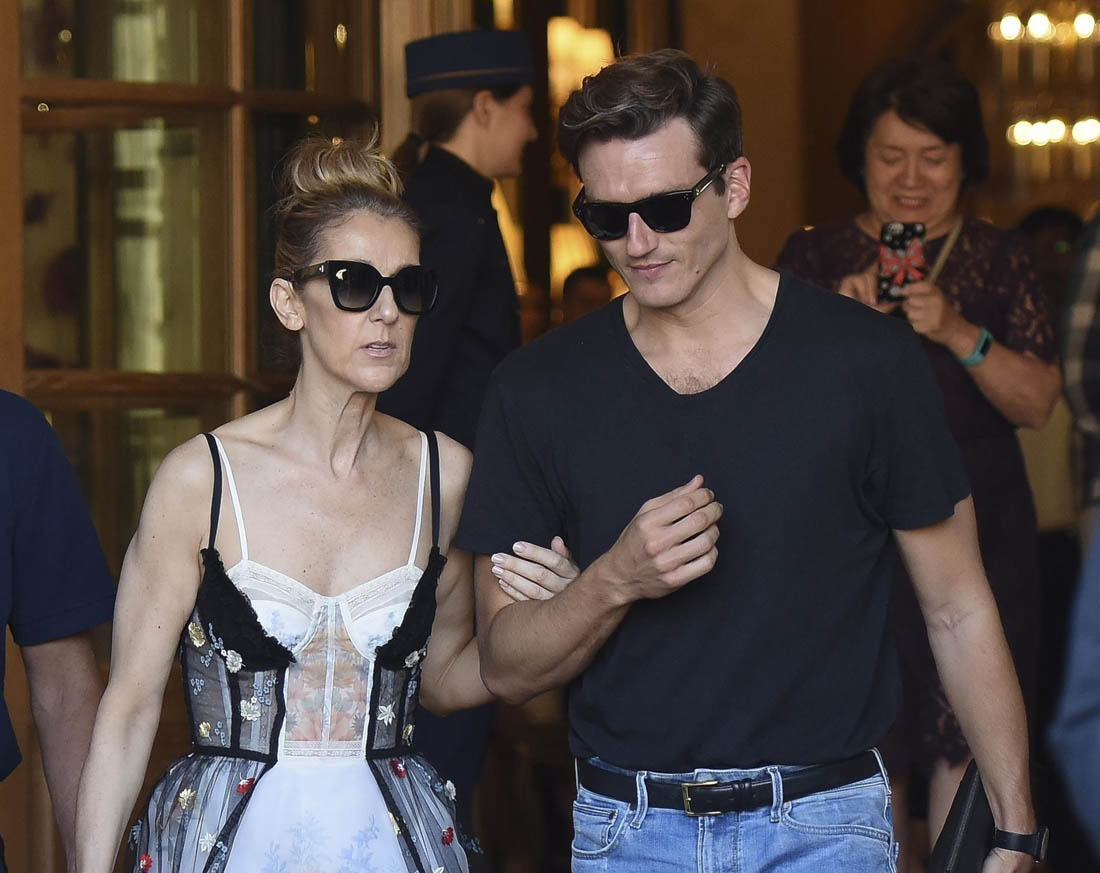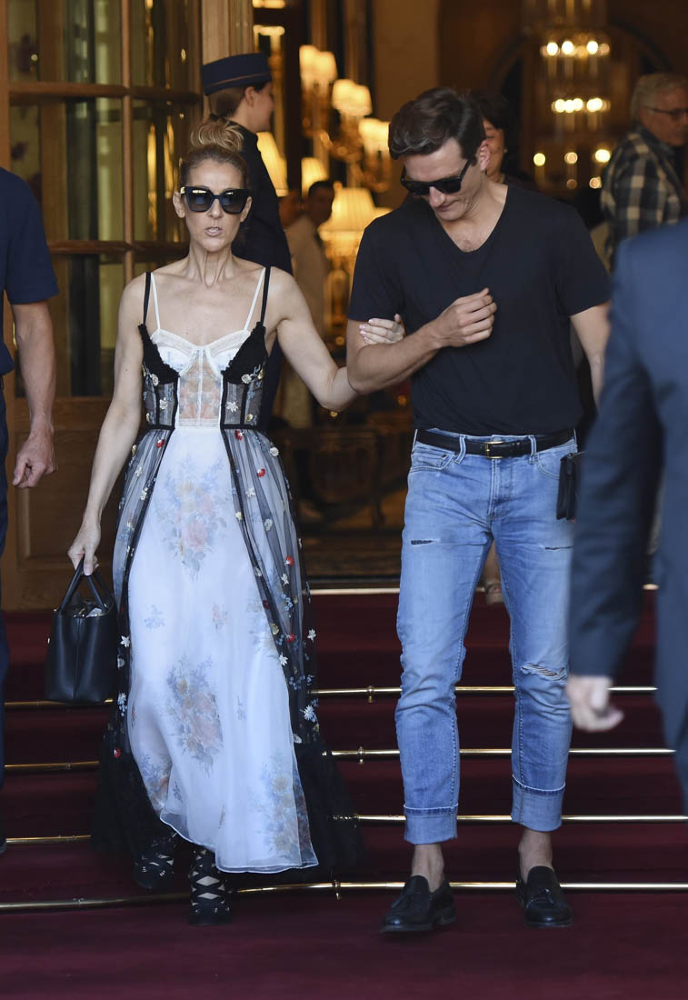 Celine Dion stepped out today in Paris to go shopping with Pepe Munoz, a dancer in her show, and her fashion illustrator who’s been sketching all her Paris 2017 fashion moments. It was rumoured a couple of weeks ago that Celine and Pepe are together. They’ve both since denied that what’s between them is romantic but it’s not like Celine wouldn’t have heard what people are saying. So, given that she’s taking him along to Schiaparelli with her and not bothering to be shy about it, it’s because there’s nothing to see here… or she has no problem with you thinking she might be getting some from someone younger and super flexible.