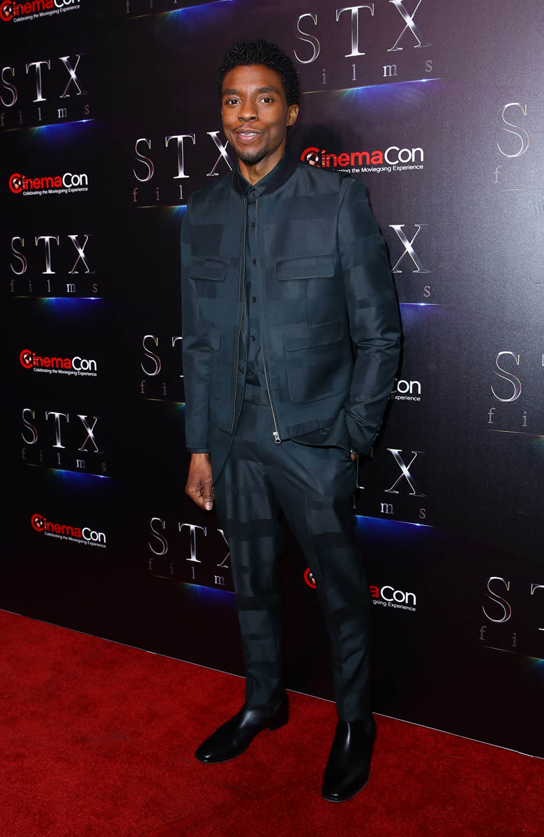 CinemaCon is happening this week in Vegas. This is when the studios bring in the stars to schmooze theatre owners. Chadwick Boseman was there to promote 21 Bridges. It’s his first starring role since Black Panther in which he plays a police officer hunting down a group of criminals who’ve killed 8 cops after a heist. Chadwick produces alongside Joe and Anthony Russo and the film also stars Stephan James. Chadwick and Stephan are in a movie together… I don’t know how I’m going to stand it. And, also, Taylor Kitsch. So two Canadians and the King of Wakanda. Right. See you on opening weekend.