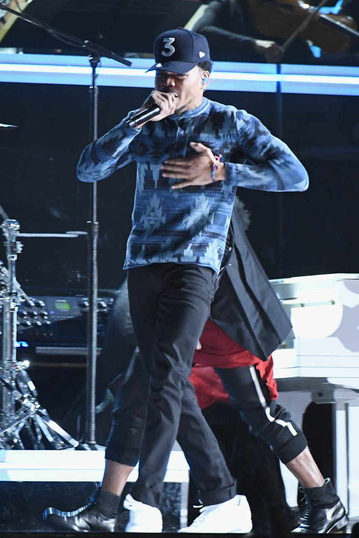 Rolling Stone tweeted a fact last night that I couldn’t believe: the last black hip-hop artist to win the Best New Artist Grammy was Lauryn Hill in 1999. It’s been almost 20 years. For the past two decades, hip-hop has dominated mainstream music and the Recording Academy is trying to tell us that Macklemore & Ryan Lewis were the only deserving hip-hop act in that time? That stat should have prepared me for what was going to happen later in the night. I should have known. Anyway, I’m going to focus on what the Grammys did right and that was to give Chance all the things. There was a point in the broadcast where I couldn’t believe we still had his performance to look forward to because we had already seen him so much.