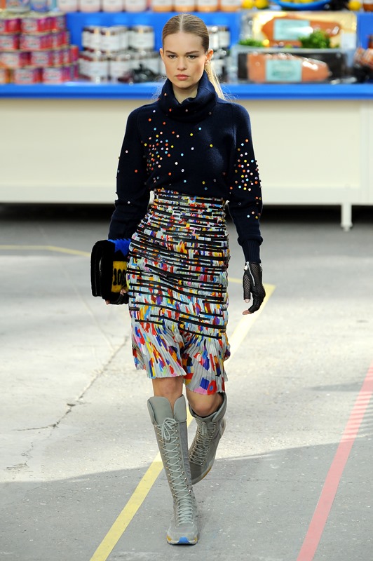 Here’s why some people think fashion people are assholes. This runway is a f-cking grocery store. If I could afford to wear Chanel, I wouldn’t be wearing it to buy milk! Being Chinese, I’d probably wear it with furniture wrap over the buttons.