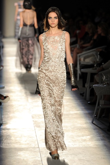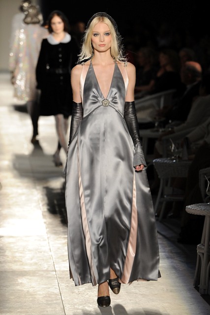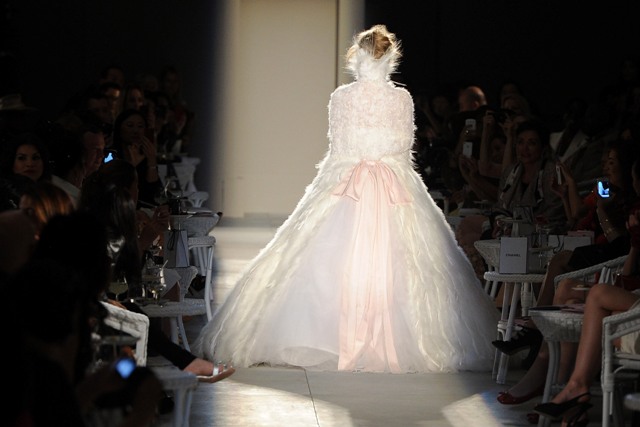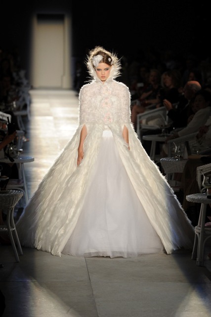 I’ve always been partial to winter weddings...for the capes! Nothing like a cape with a hood, even if it’s feathered. I’m ok with a feathered cape, so long as it’s not a feathered skirt on a strapless gown that’s already been done 18 time by Penelope Cruz. The rest of the collection seems rather...restrained. Karl will probably offer some kind of explanation on the economy. He’s all-knowing and profound like that.