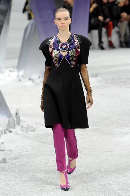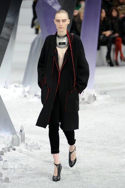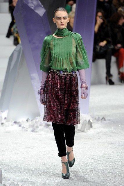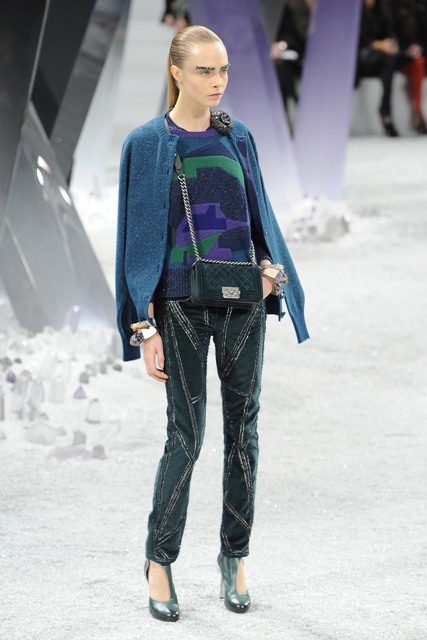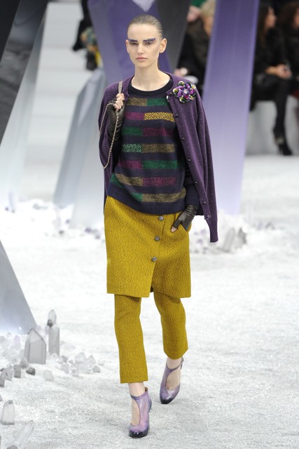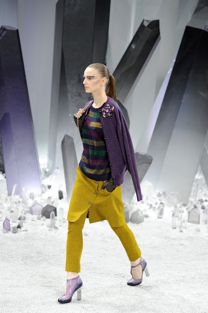Am obsessed with this collection. It reminds me of the 80s, I think that’s why. Pants above the ankle and long sweaters in prints that border on tacky but not quite. And a modern twist on the t-strap heel. In love.