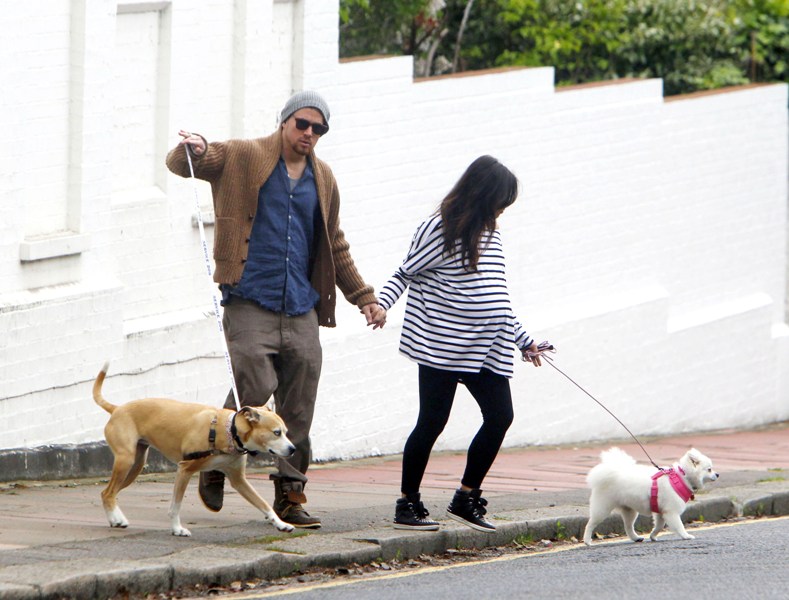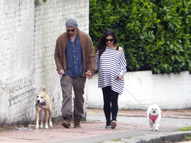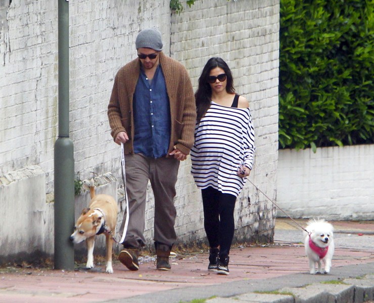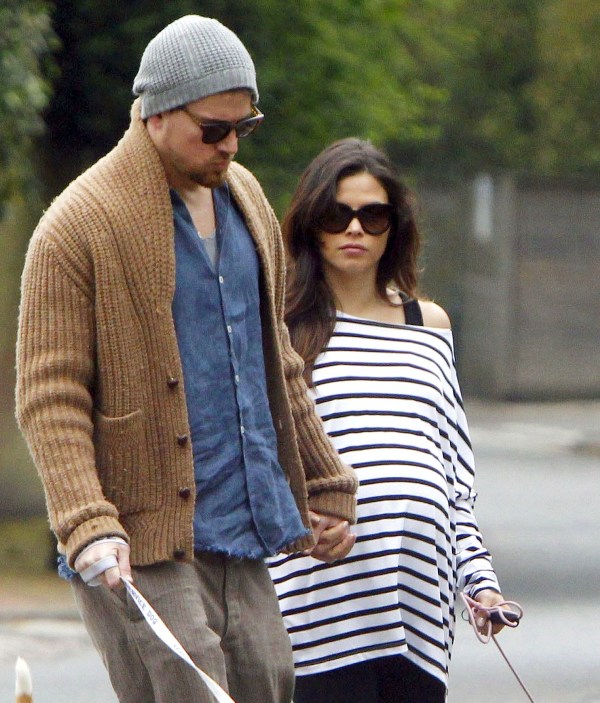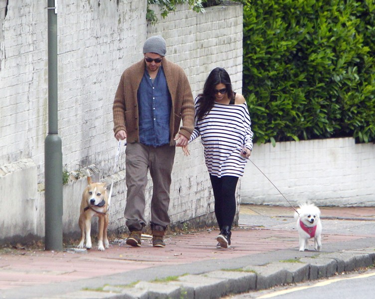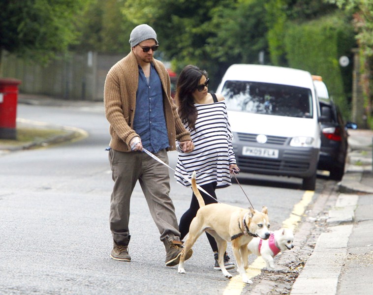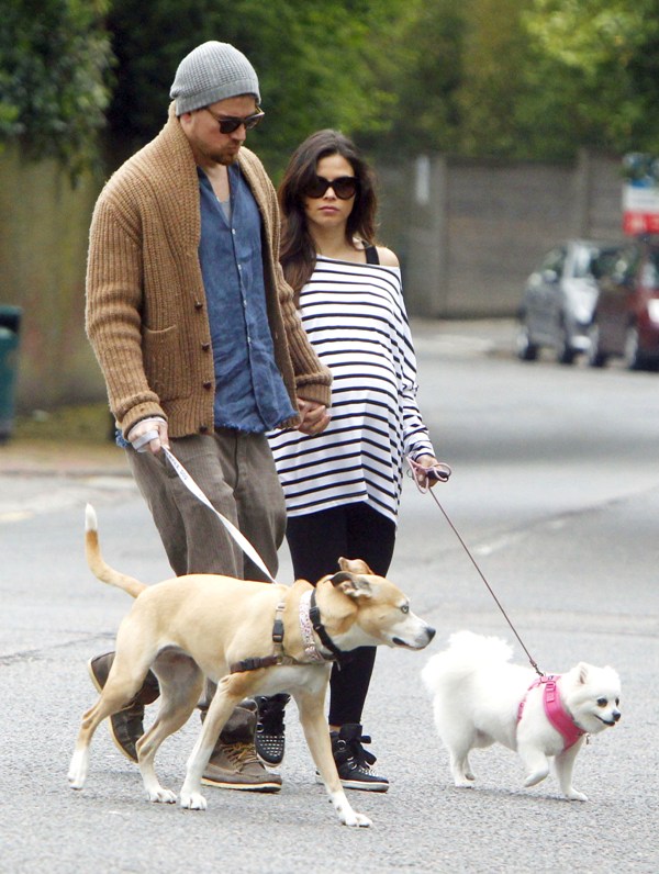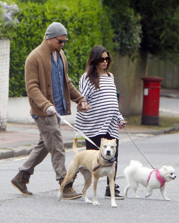 Attached -- Dewan and Tatum walking their dogs in London the day before she gave birth.