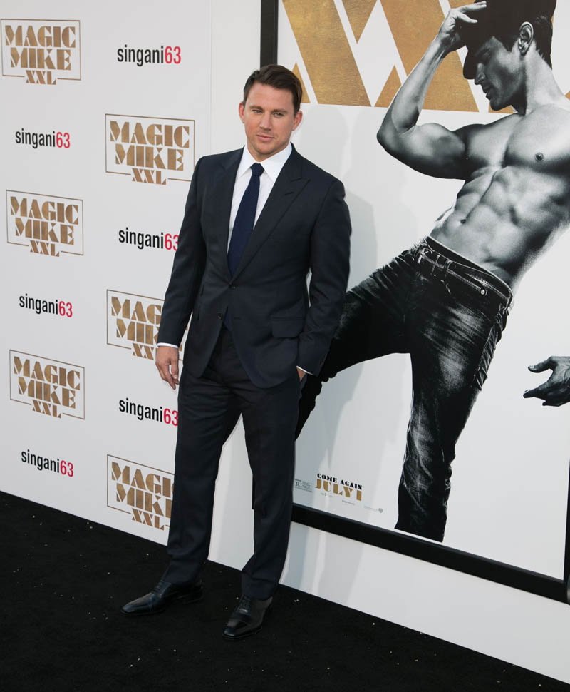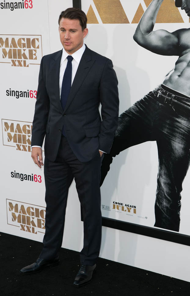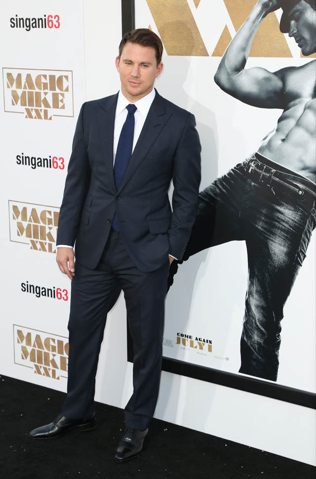 Here’s Channing Tatum and all his “stromos” at the Magic Mike XXL premiere getting that gay money last night.