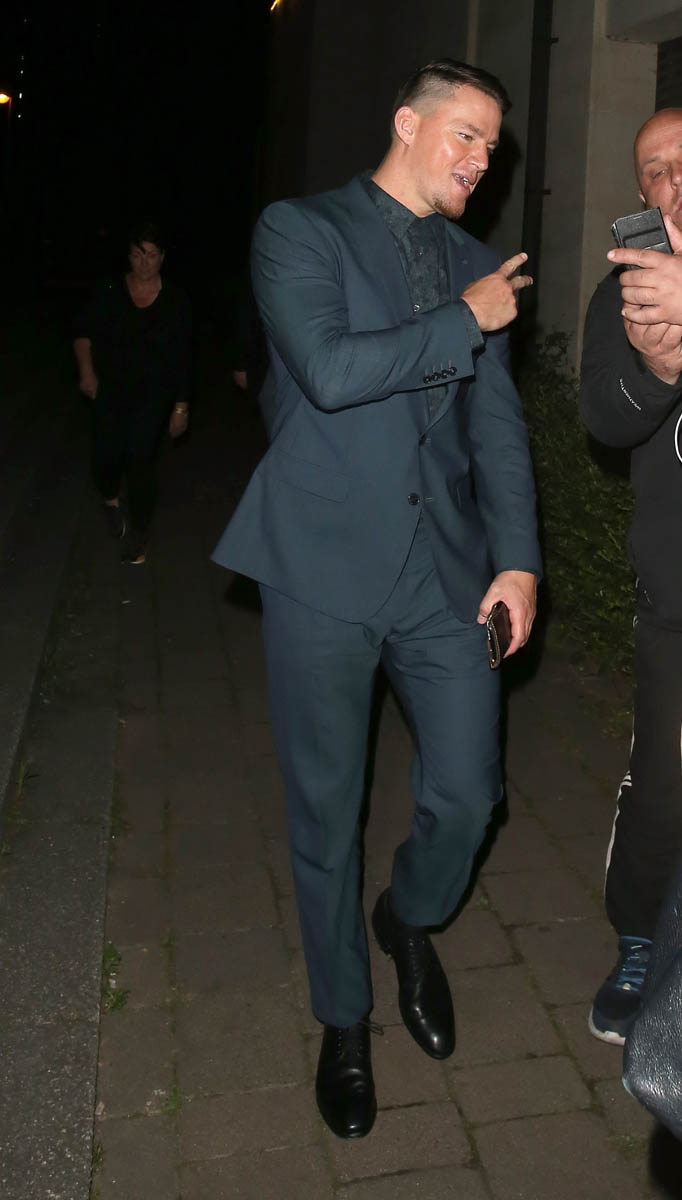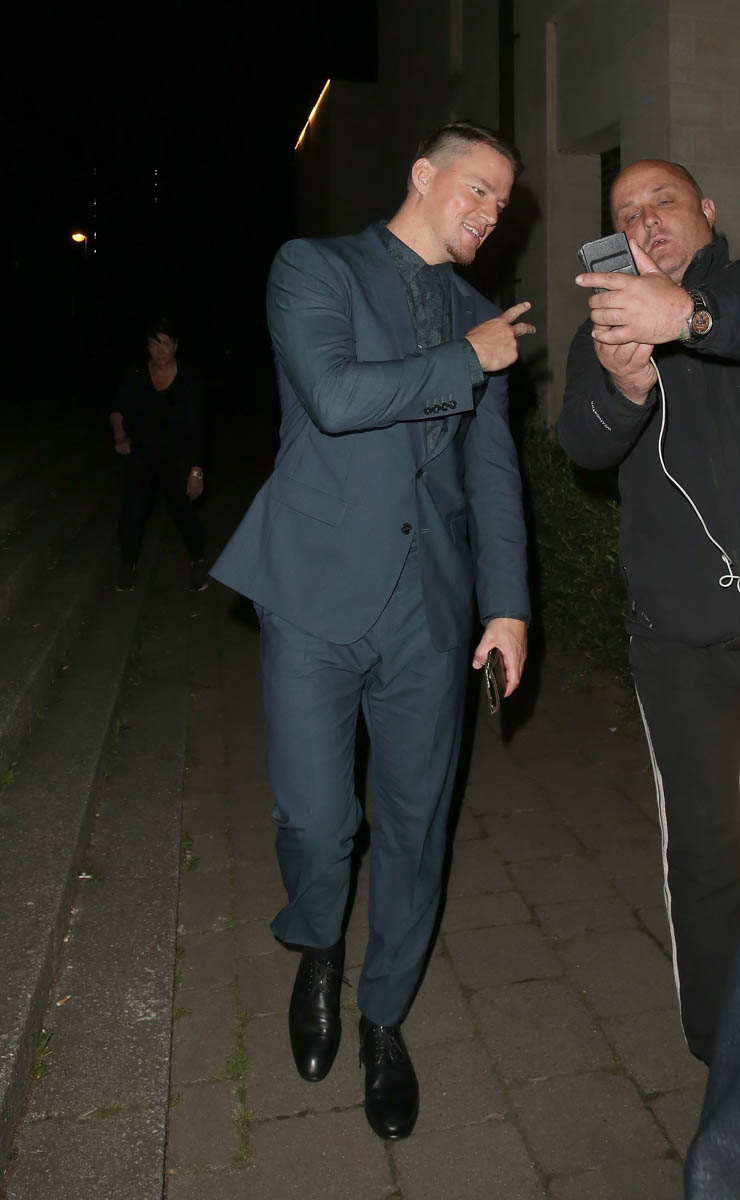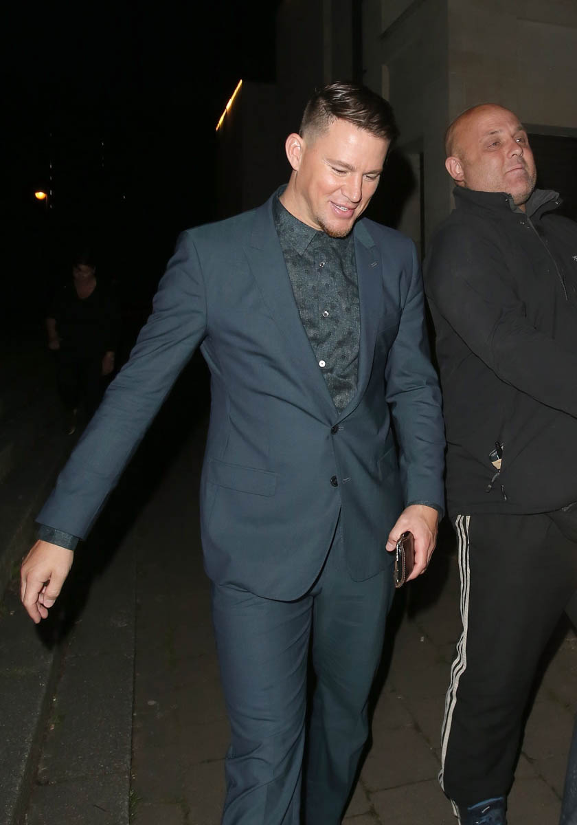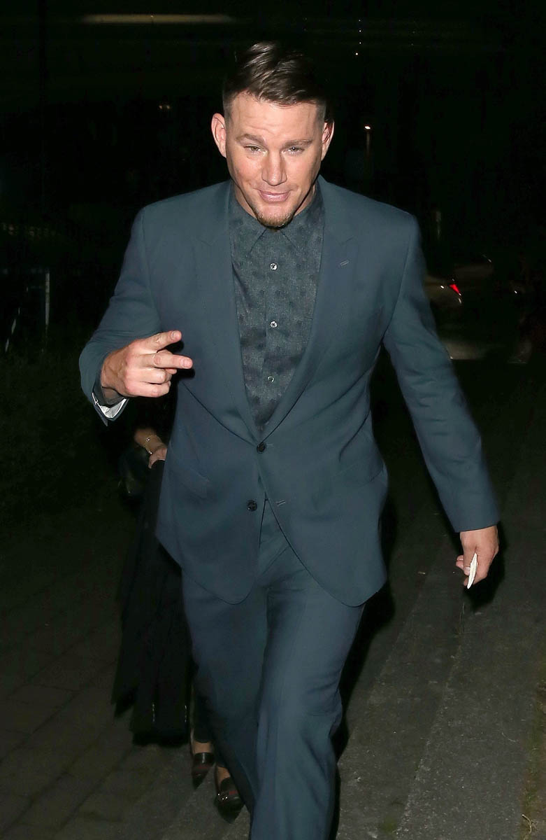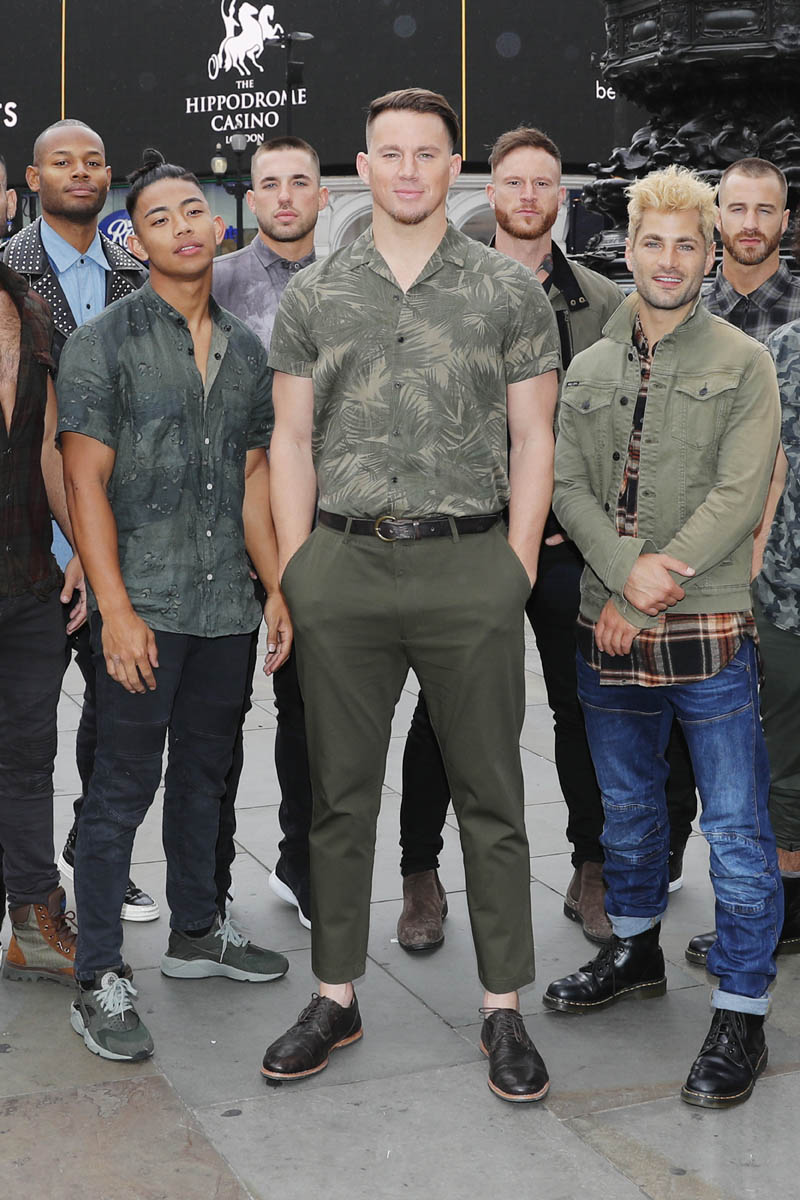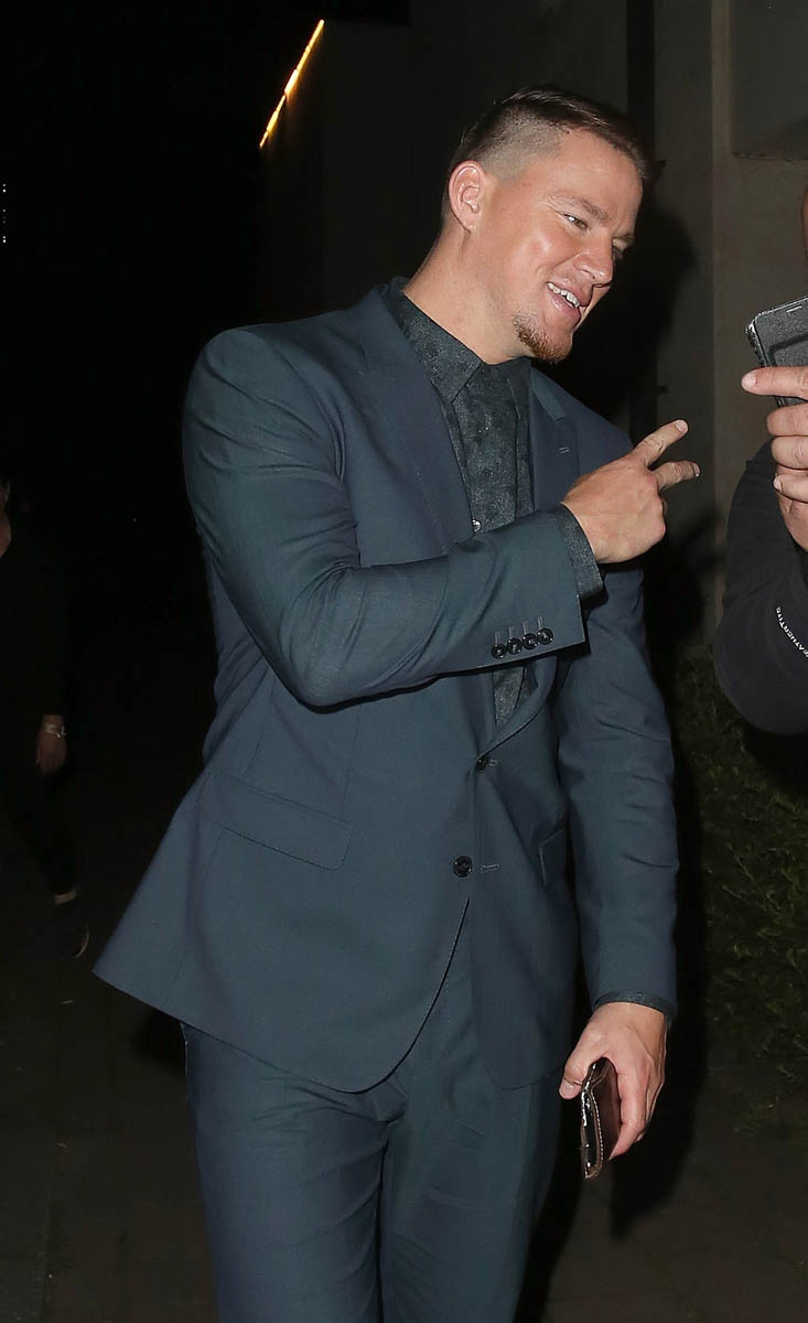 When I looked at these shots of Channing this morning, and these other shots I’ve attached of him today, outside the theatre promoting the show, in a green short sleeve printed top with green pants and black Timberlands, my first thought was…does he look really good? Is this a “post breakup makeover”? I want it to be. People talk a lot about the “post breakup makeover” but it’s almost always about women. It’s not just women. Men too. Allllll the time. Not that Chan needed a makeover, although there have been times when he hasn’t seemed all that fresh. The freshness though is here – clothes fit really well, crisp haircut, no bloat on the face. Am I imagining it or do you see it too?
