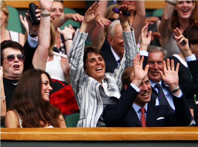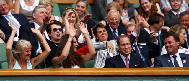 Also attached – more from Will and Kate at Wimbledon yesterday doing the wave. They’re adorable. Imagine the Queen doing the wave? Please. And I LOVE the scalloped straps on that Temperley dress.
