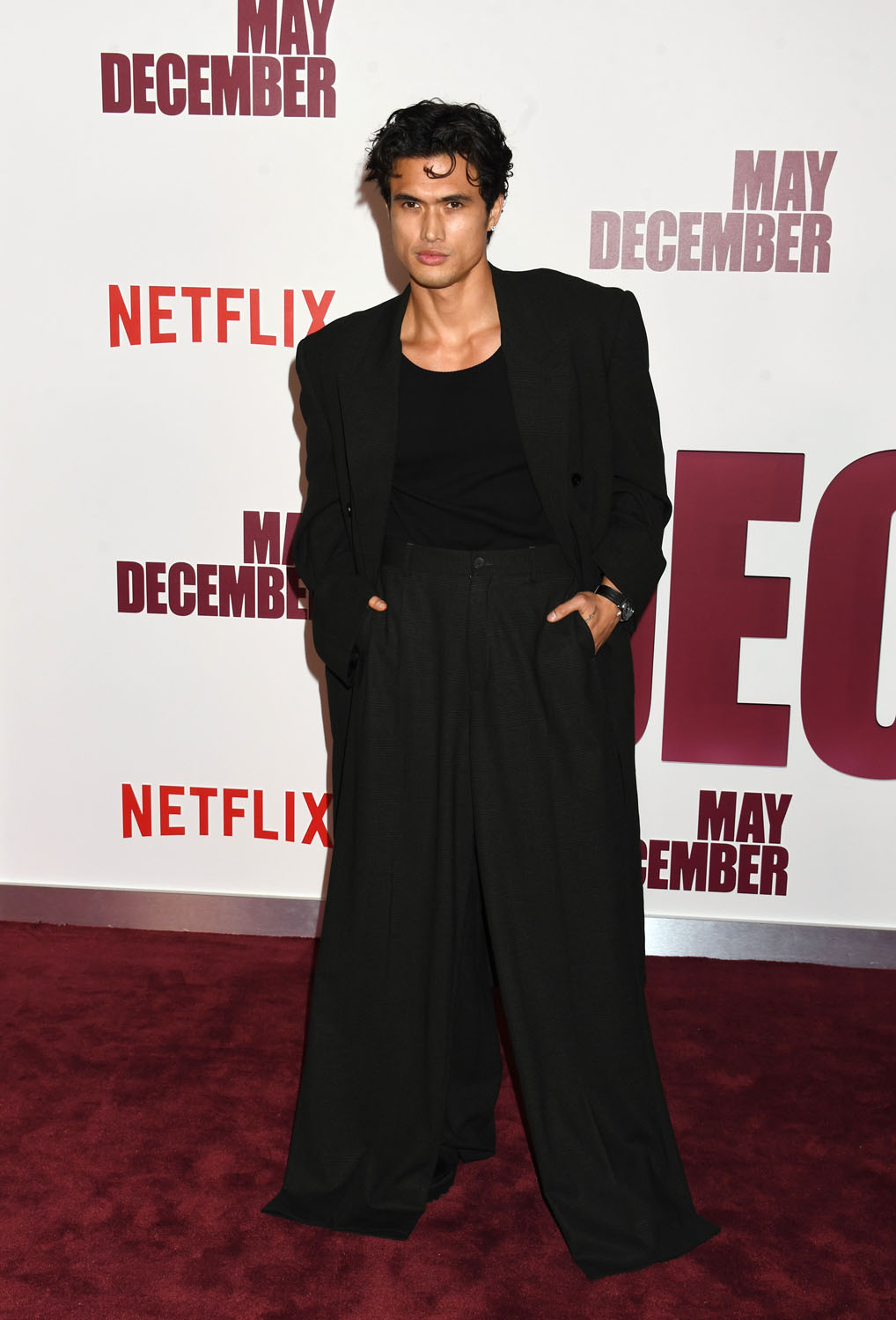 Here he is at the premiere of May December last night, as swoony as he’s ever been in a long black jacket over wide leg pants and that hair, that floppy K-pop hair and those dimples and that smile and I mean, come on, we could use more of Charles this award season, right?