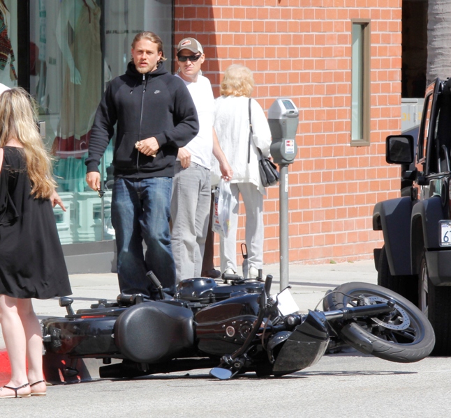 Charlie Hunnam was photographed out in Beverly Hills yesterday. Goddamn he is hot. Especially when he’s moving around naturally and not on a red carpet with his chin up. We’ll likely be seeing more of him on red carpets as we approach the release date of Pacific Rim, in theatres July 12.