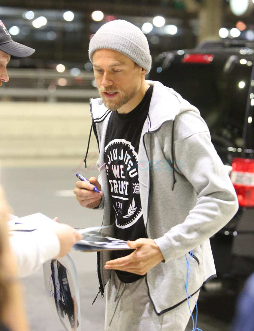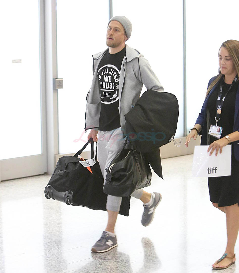 Charlie Hunnam arrived in Toronto for TIFF today. In sweatpants. When the TIFF list comes out at etalk, some of us, the reporters, we behave like children. We start fighting each other over what we think are the best assignments. I did not get the Charlie Hunnam assignment. Danielle Graham, the host of etalk, got the assignment. The DOUBLE assignment. And she’s been taunting me about it for days.
