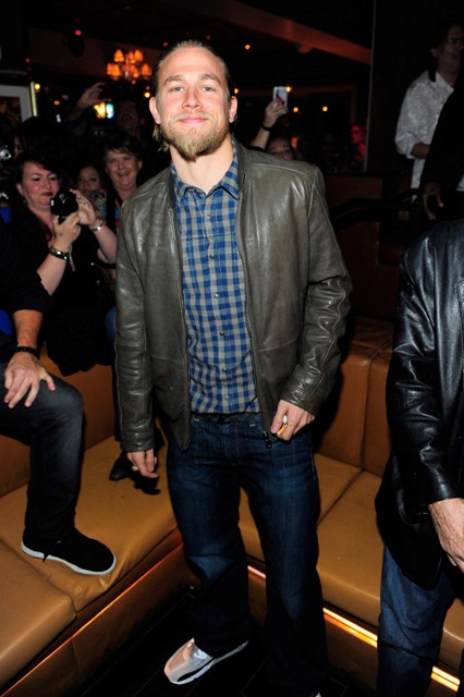 Charlie Hunnam and a couple of the boys were in Vegas this weekend to celebrate Sons Of Anarchy. To quote Opie, if he went there, I hope he wrapped his sh-t because that looks like a high traffic zone. By the way, there was a fascinating article in GQ about the big money Vegas club scene a couple of months ago. If you haven’t already, this is good lunch hour reading, except for the part where they talk about how much seminal fluid is floating in the hotel pool. Click here to read, in case you were wondering what it might have looked like the morning after Charlie.