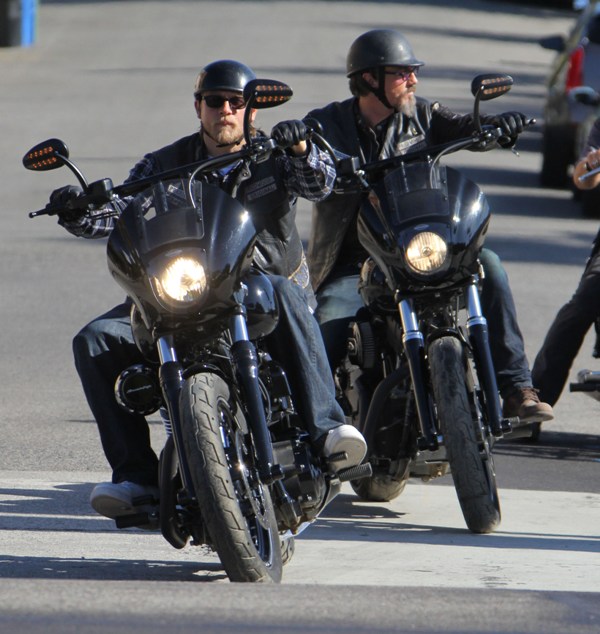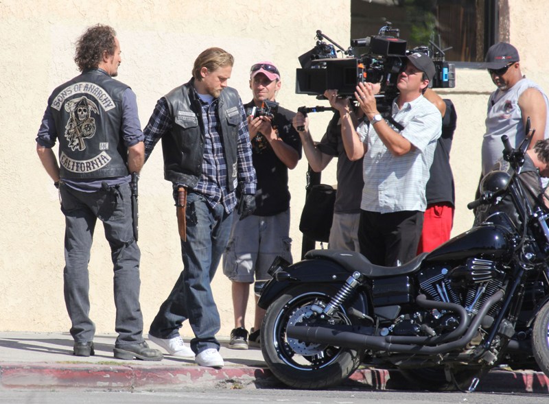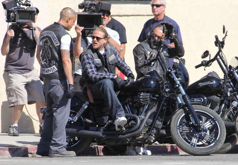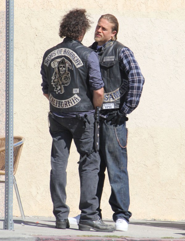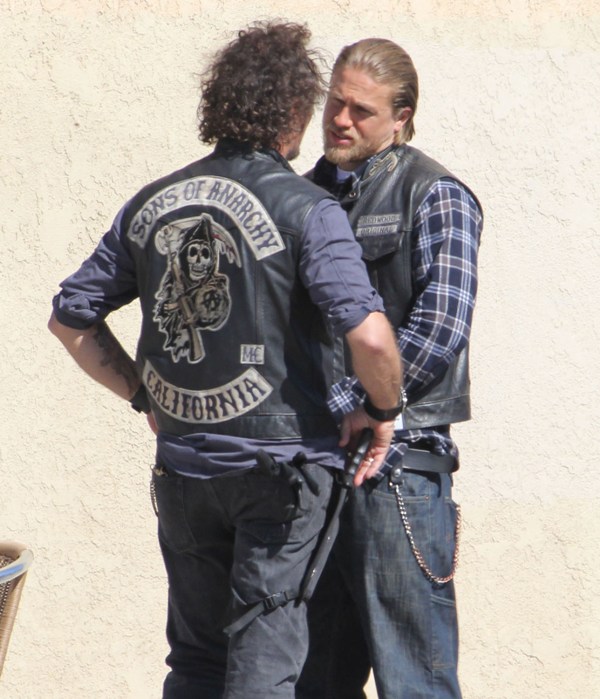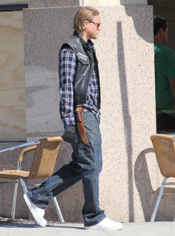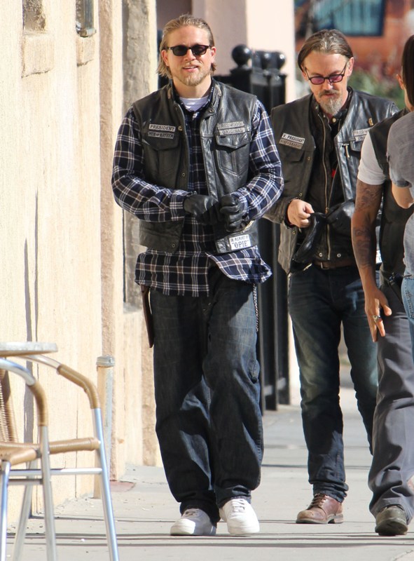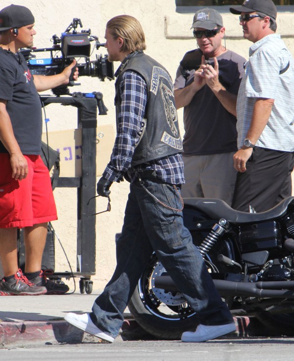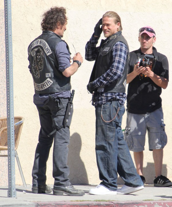 Sons Of Anarchy has started production on Season 6, said to be the penultimate season of the show. Many cast members were on set yesterday, including Charlie Hunnam in Jax’s white kicks. I can’t quite remember where we left off...except I think Tara’s in jail and Jax is well on his way to becoming a sick f-ck. No, no, I think we can safely say that Jax is officially a sick f-ck.