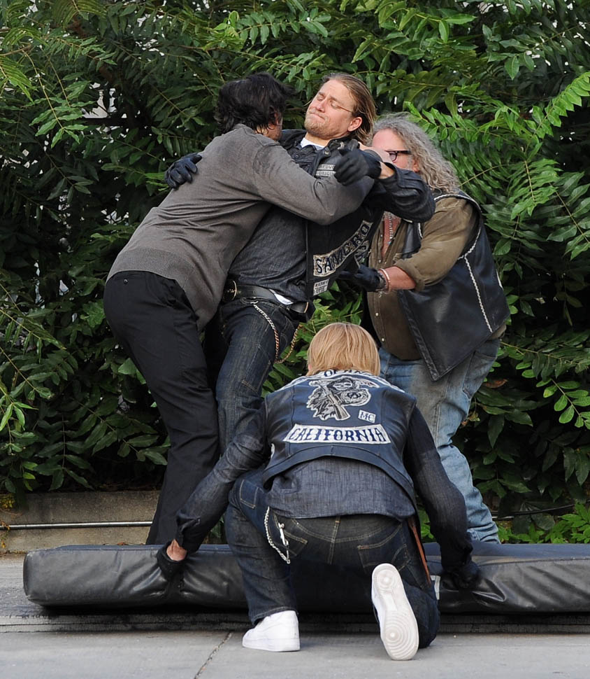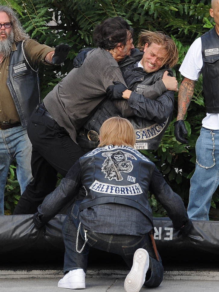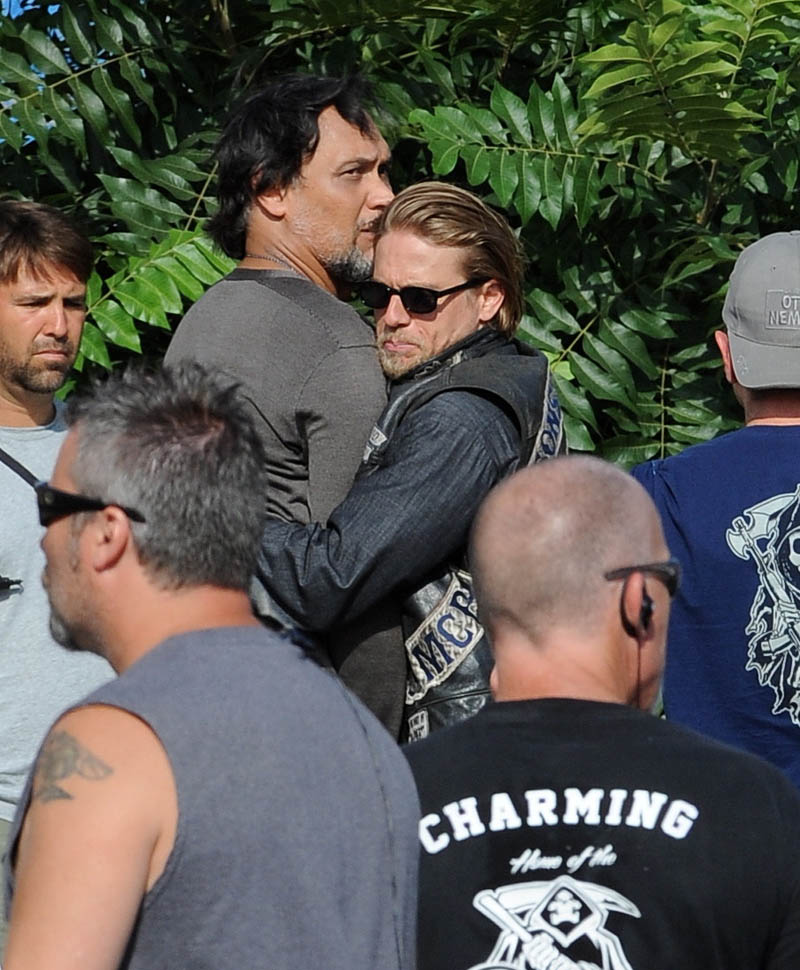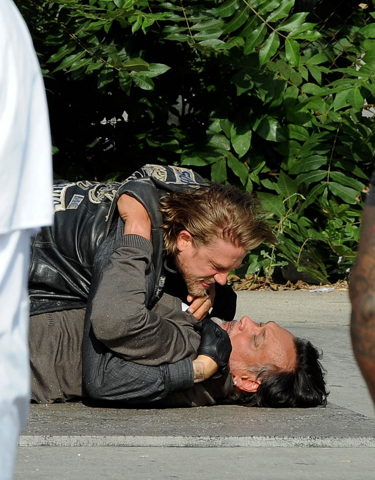 Check out Charlie Hunnam yesterday on the set of the final season of Sons Of Anarchy. It’s a fight scene between him and Jimmy Smits. So this is where it ends. How does Jax cope with the loss of his anchors? With both (SPOILER ALERT) Opie and Tara gone, who is Jax now? They were necessary decisions. And I particularly appreciate Sutter’s decision to take Tara out, like, RAW. And by the most complicated, most controversial, most interesting person on the show.