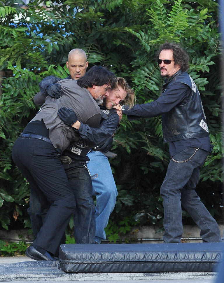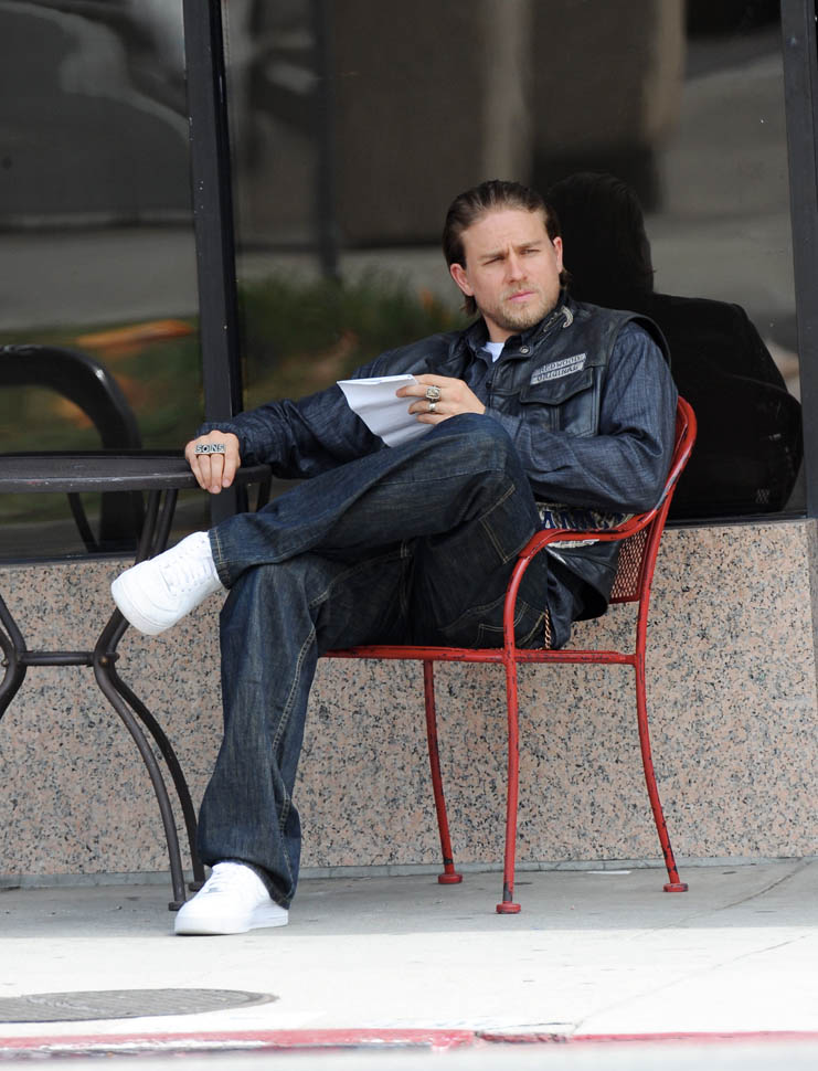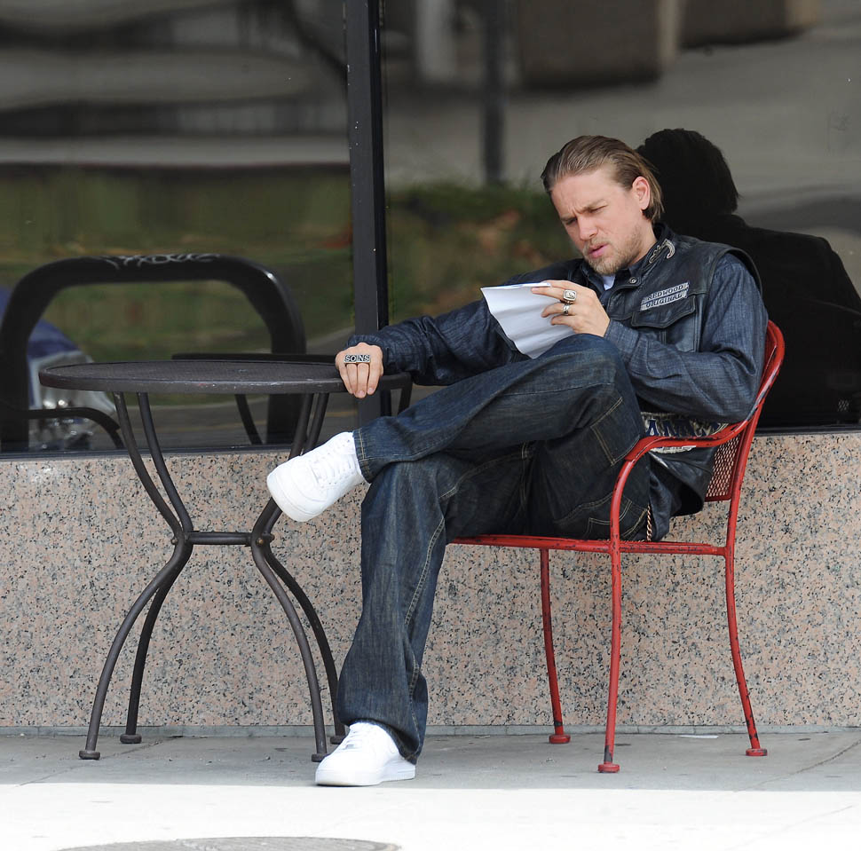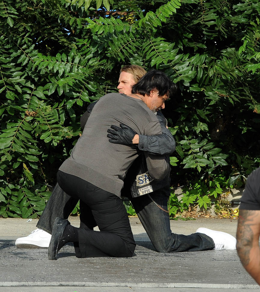 Check out Charlie Hunnam yesterday on the set of the final season of Sons Of Anarchy. It’s a fight scene between him and Jimmy Smits. So this is where it ends. How does Jax cope with the loss of his anchors? With both (SPOILER ALERT) Opie and Tara gone, who is Jax now? They were necessary decisions. And I particularly appreciate Sutter’s decision to take Tara out, like, RAW. And by the most complicated, most controversial, most interesting person on the show.