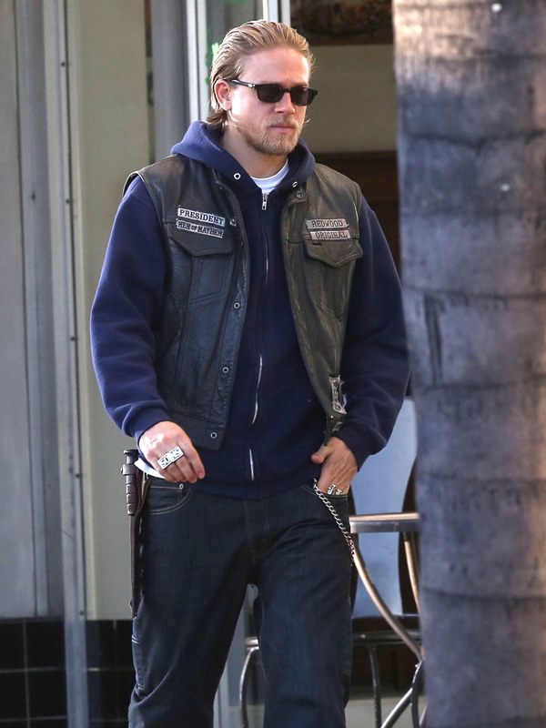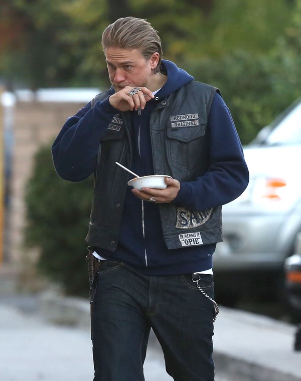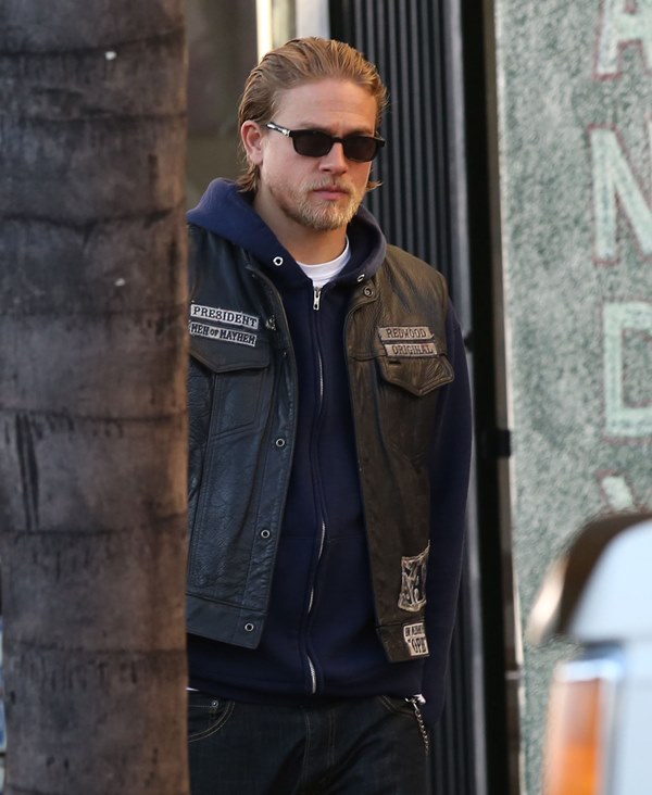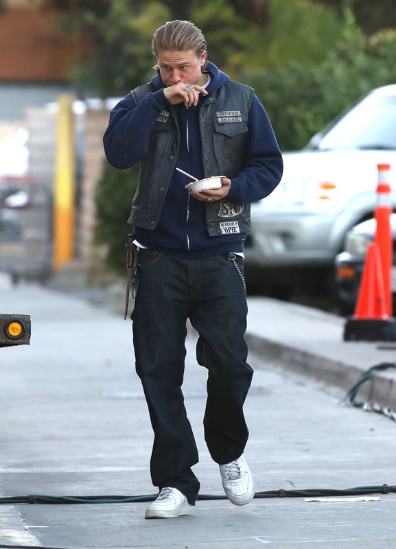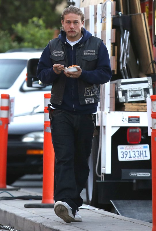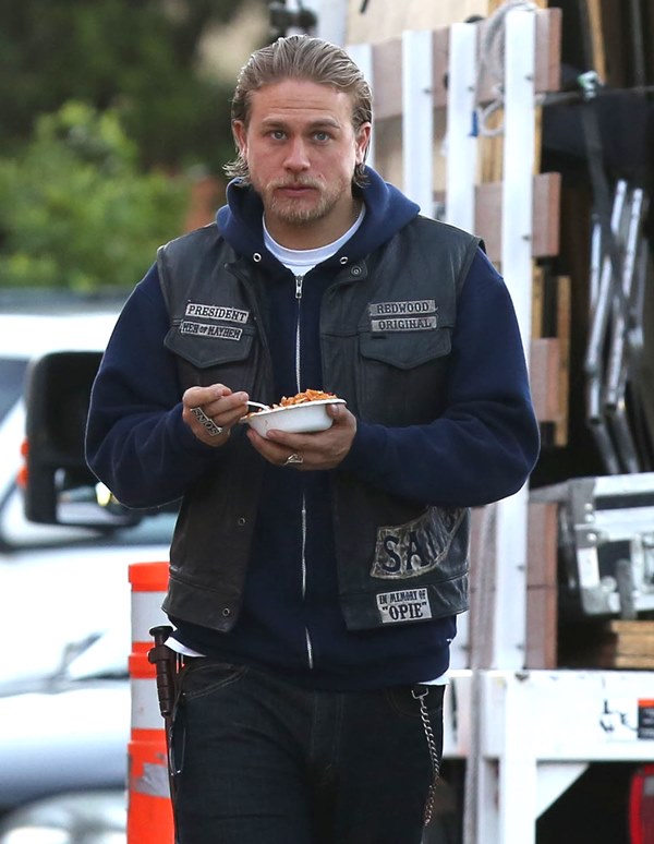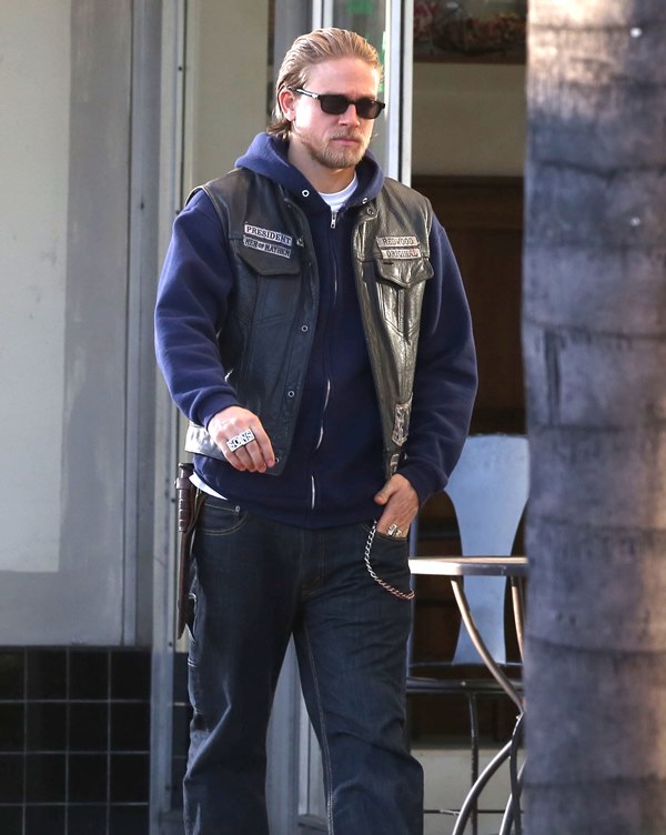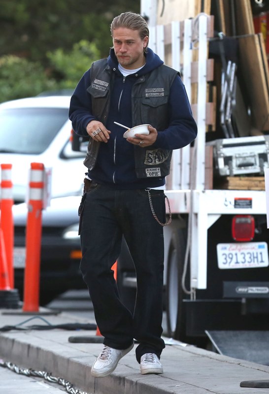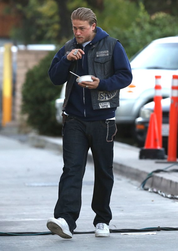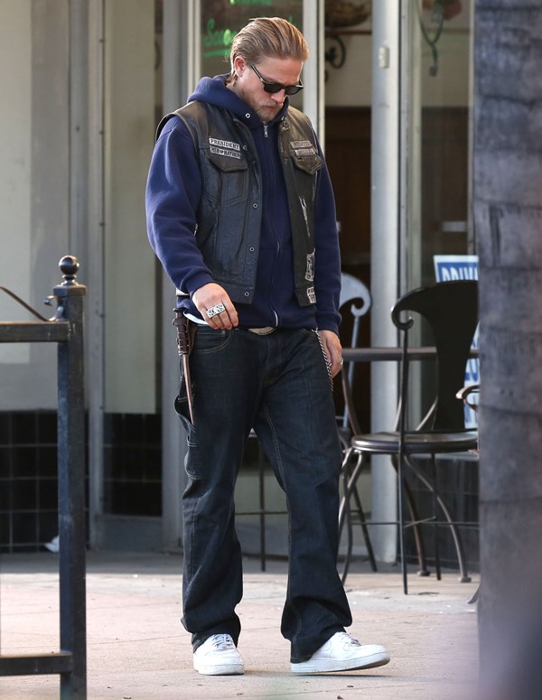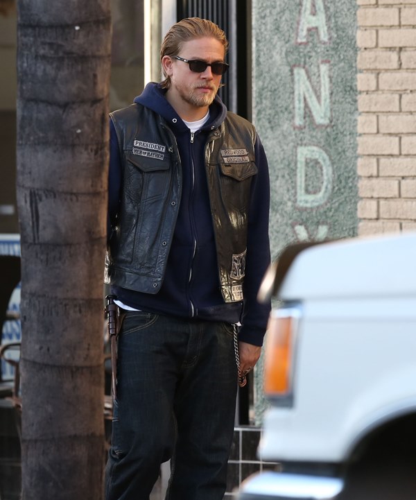 Here’s Charlie Hunnam on the set of Sons Of Anarchy yesterday after quitting Fifty Shades Of Grey this weekend. Click here if you missed my post yesterday analysing his decision. Did Charlie Hunnam not have the balls to play Christian Grey? Or did he have the balls to NOT play Christian Grey? I think he had the balls to NOT play Christian Grey. At this point, only Twi-Moms are mental enough to see this as a prestige project. And if you’re a fan of Matt Bomer, why would you want that for his career?