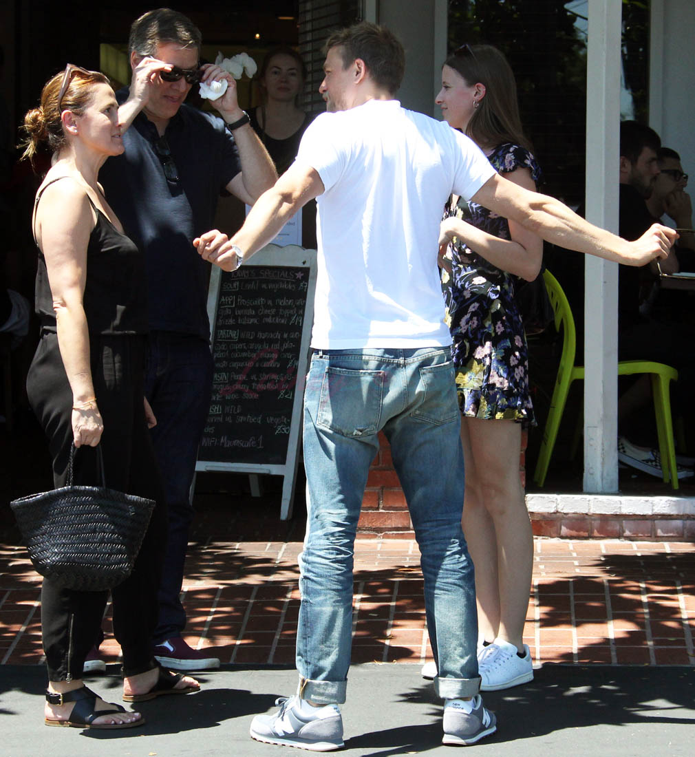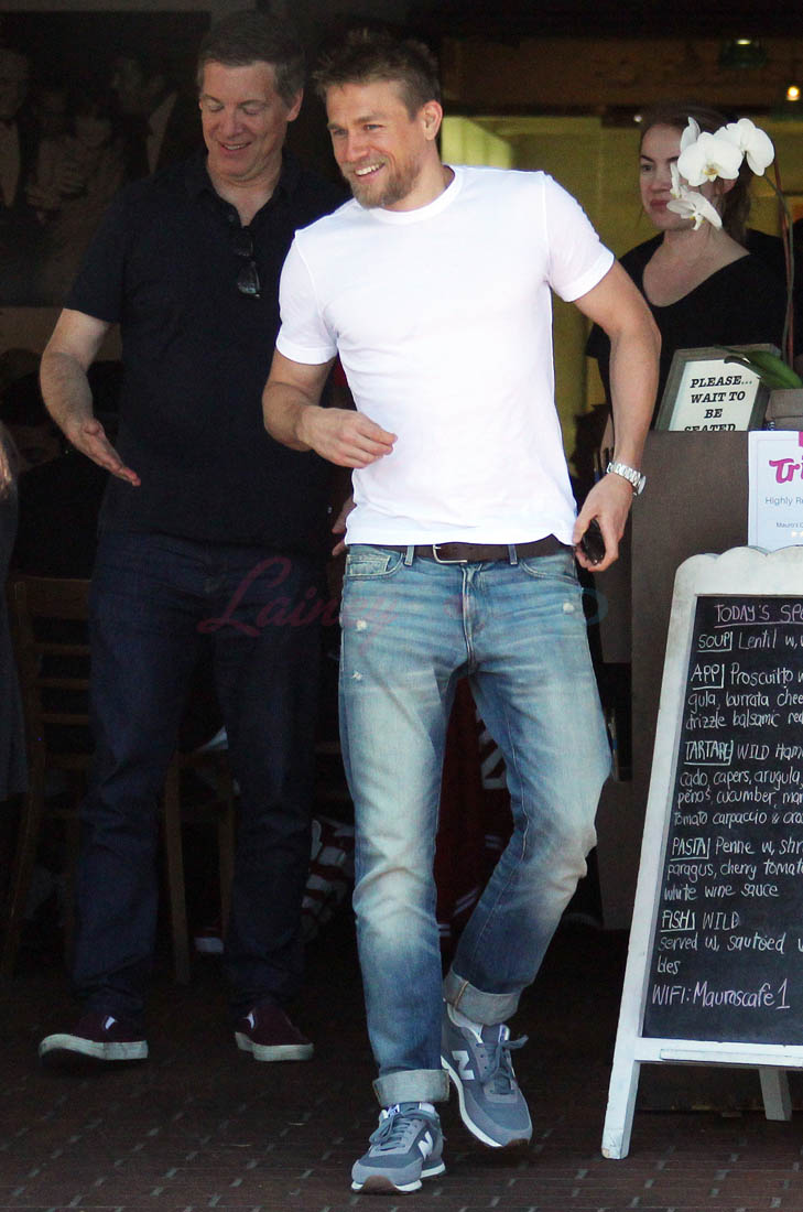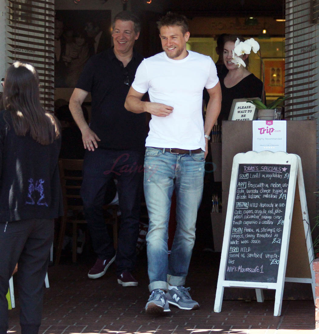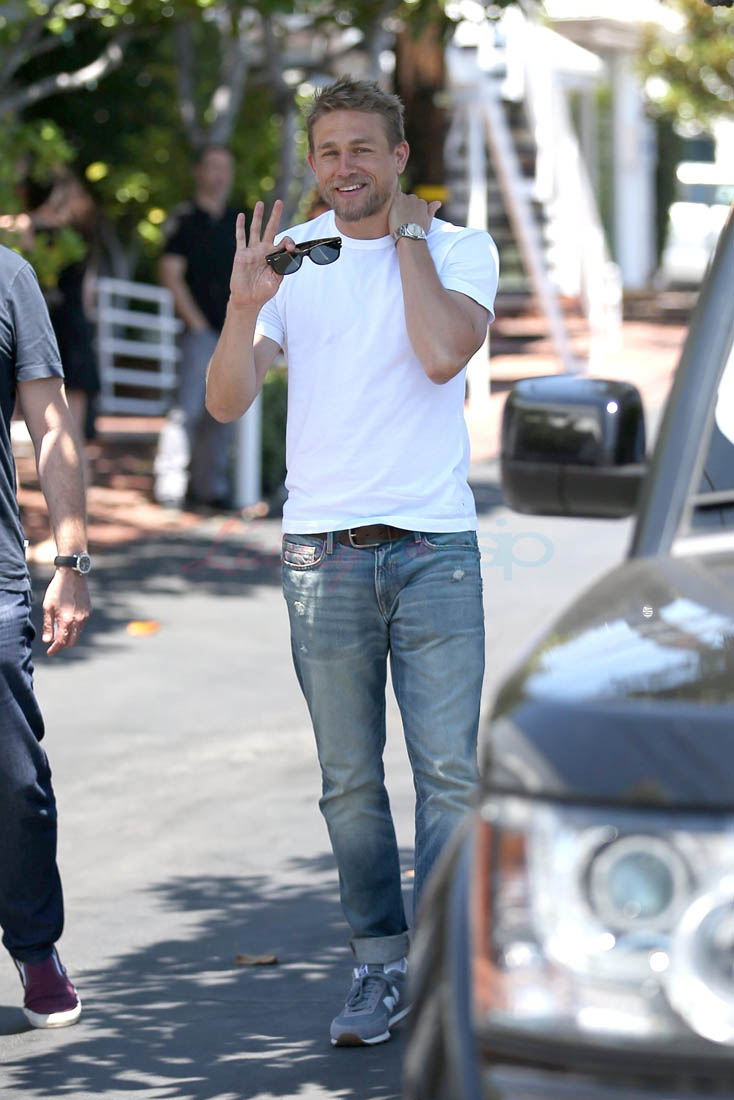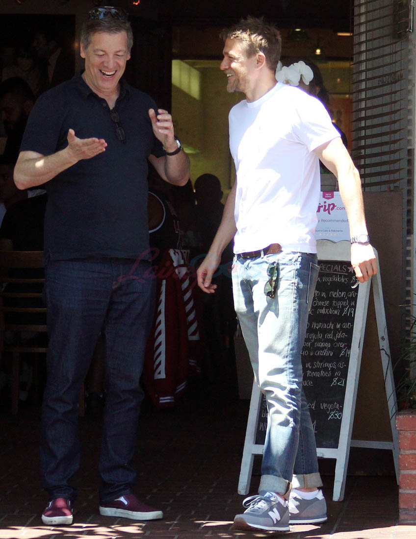 Here’s Charlie out with friends yesterday, smiling and wearing the sh-t out of those jeans.