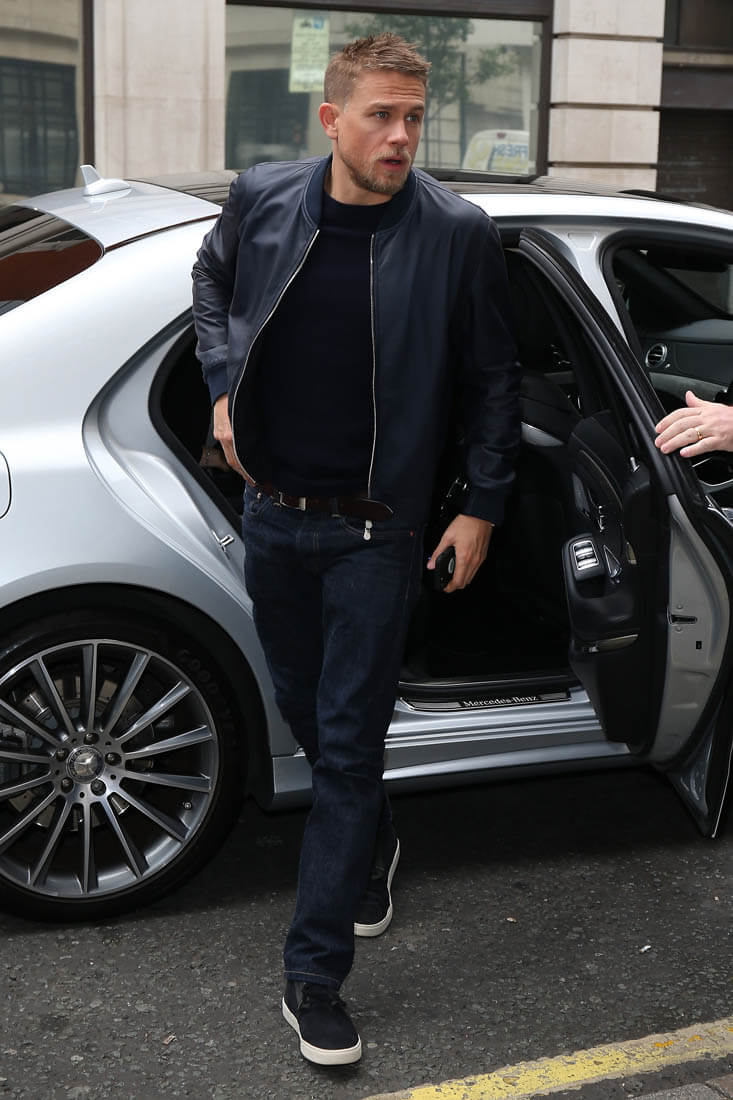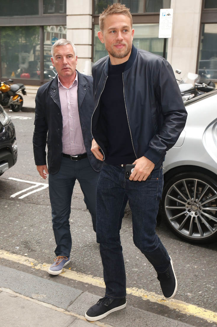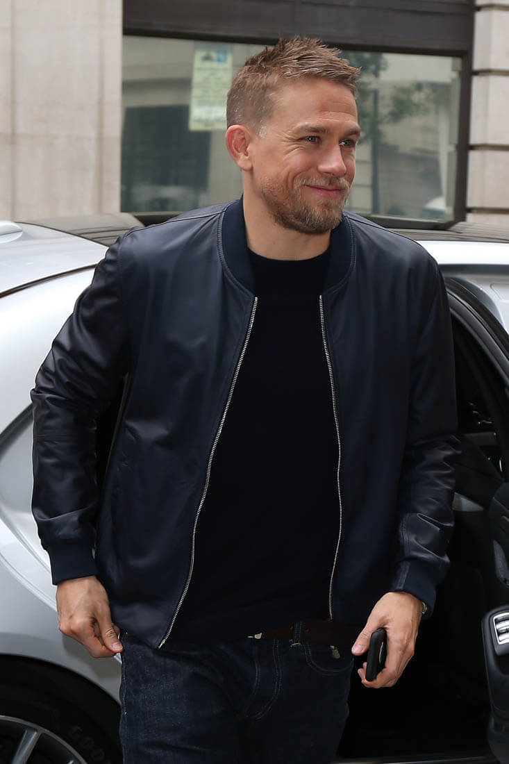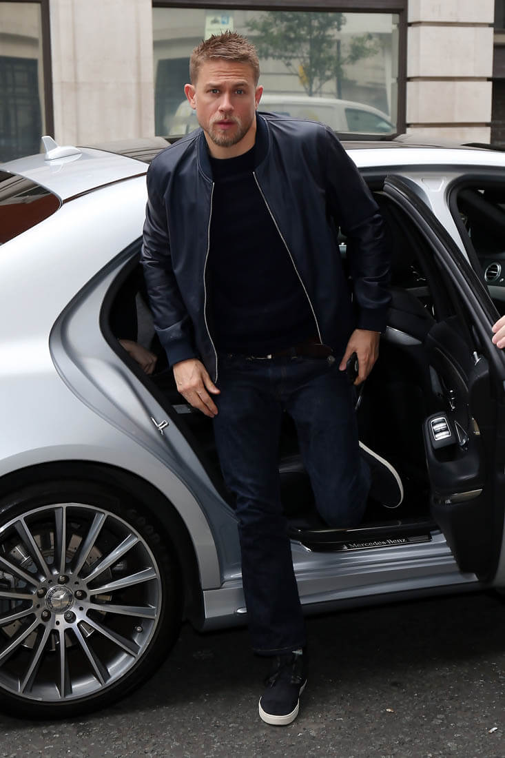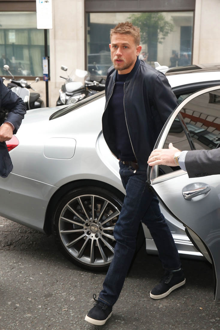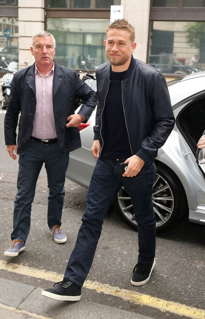 Here’s Charlie Hunnam in London today continuing to promote King Arthur: Legend Of The Sword. He looks hot in that leather jacket. Hot enough to save his movie? Variety reported yesterday that the movie is looking like an “epic flop”. Forbes agrees, saying it’s “likely (the) biggest flop of 2017”. King Arthur cost $175 million to make and right now they’re projecting an opening weekend take of around $25 million, $30 tops. So, as usual, they’ll be looking overseas to make back the rest of it. Domestically though, even at $30 million, it’ll be considered a bomb.
