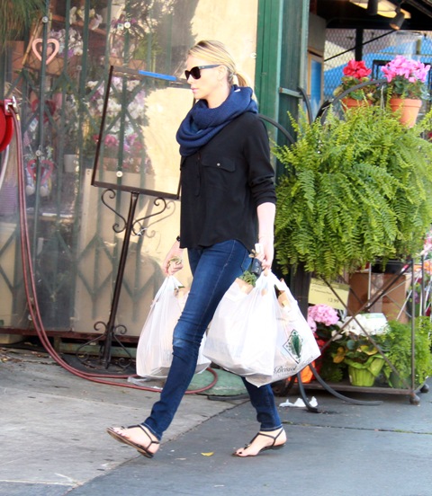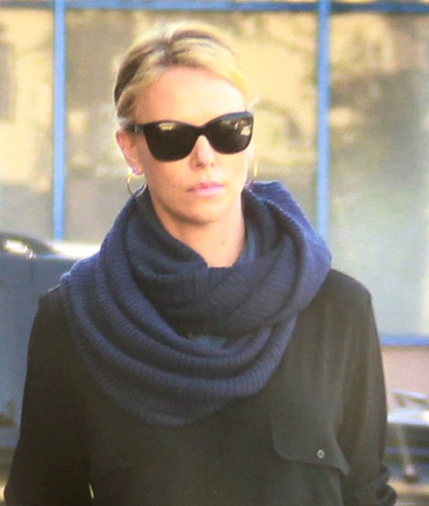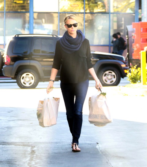 Attached - Charlize hasn’t been out publicly since Oscar week. Here she is just before the Academy Awards shopping for groceries.