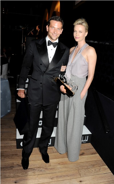 Charlize Theron and Bradley Cooper attended the GQ Awards in London last night. They sat next to each other. They were on stage together. They’re currently both single, he having ended it with Renee Zellweger earlier this year and she’s available again after a brief, undercover situation with Ryan Reynolds.