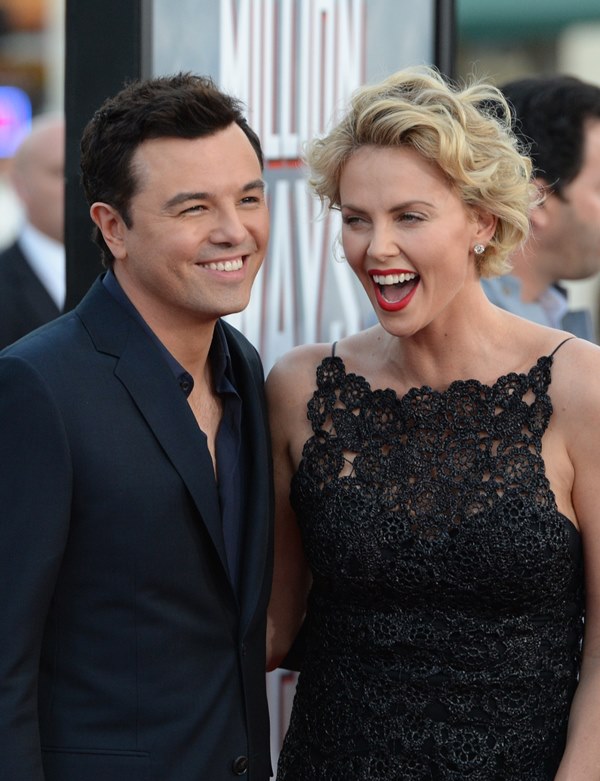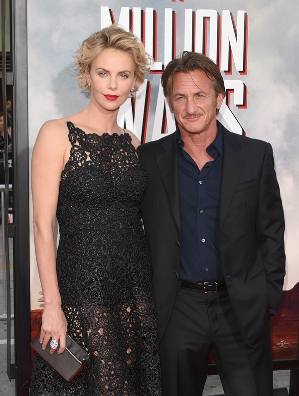 Charlize Theron showed up to the premiere of A Million Ways To Die In The West hand in hand with her boyfriend Sean Penn last night. Her boyfriend Sean Penn. Hand in hand. Smiling at each other. And he’s SMILING at her. And the cameras too. And looking up at her adoringly. And no one got hurt. Not even Seth MacFarlane who was hugging Charlize at one point and, if you recall, they were rumoured to have been hooking up last year.