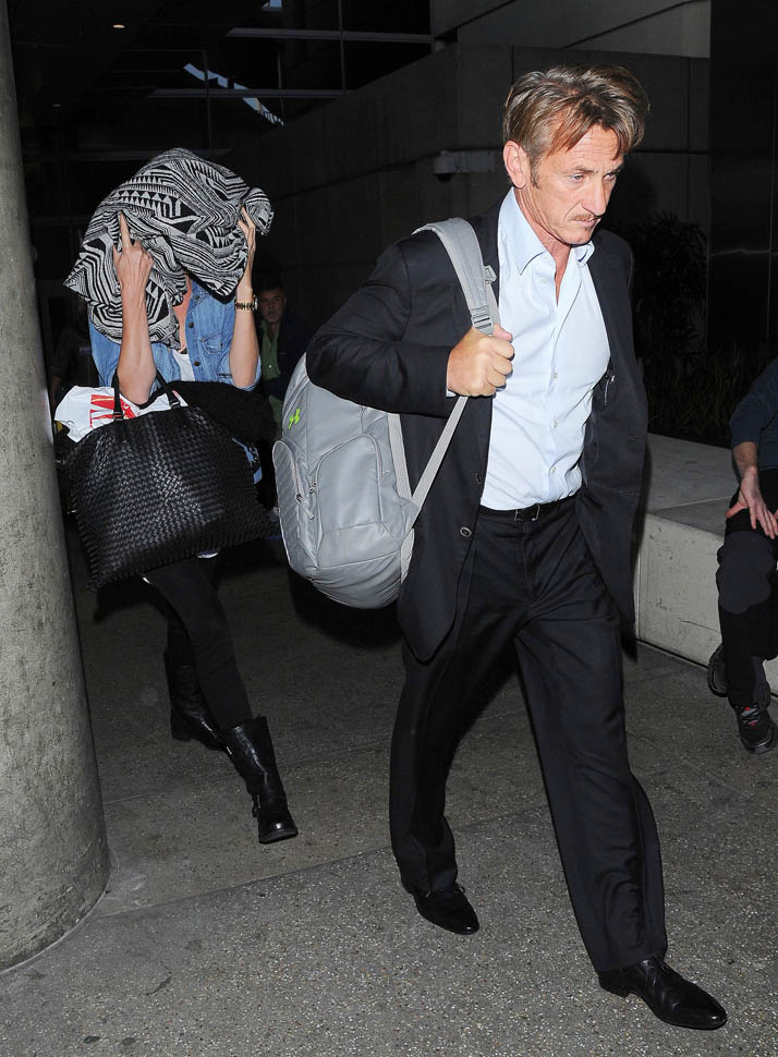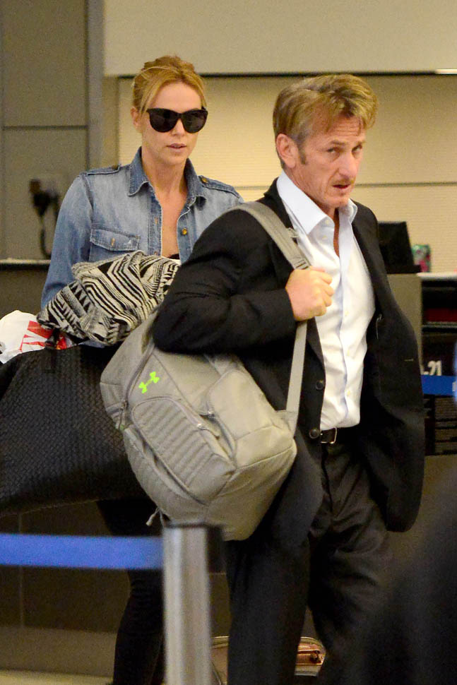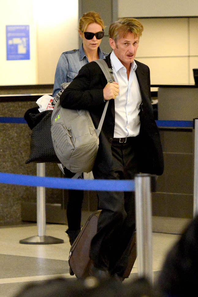 Sean Penn is getting papped at the airport and Charlize is covering her head and he calmly walked to the car. THIS IS A THING.
