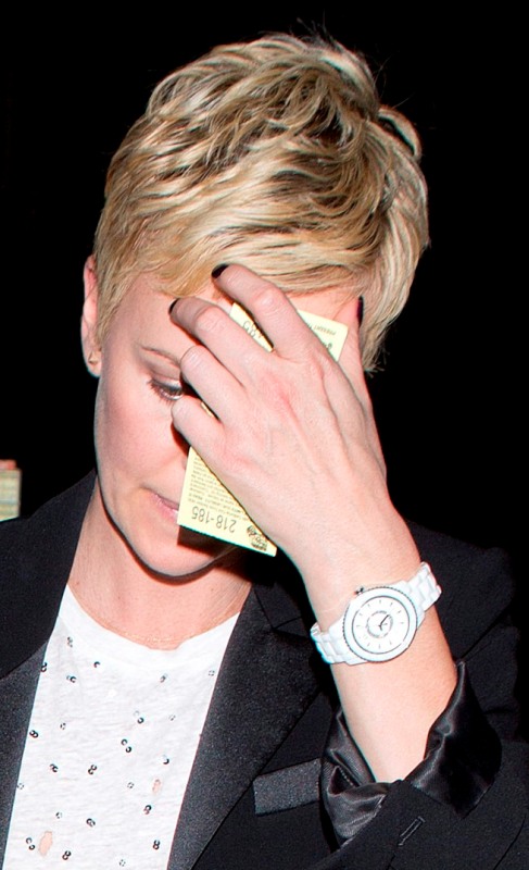 I see Seth MarFarlane giggling, sure. I don’t see Charlize Theron giggling. I see Charlize Theron bitch-facing. I see Charlize Theron looking for something to stab. I see Charlize Theron looking for an exit. But I don’t see giggling. I don’t even see any lingering giggling.