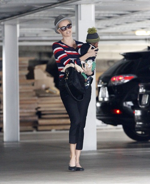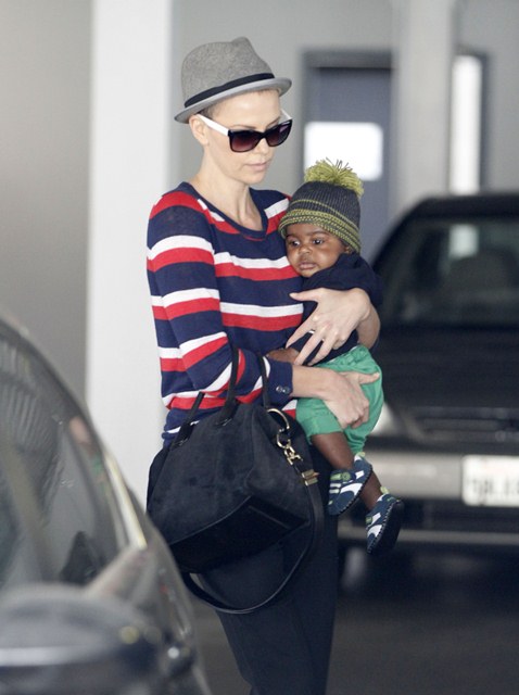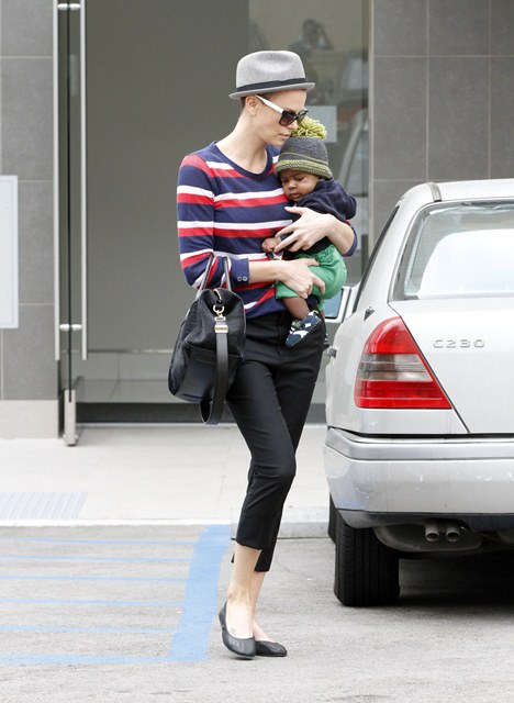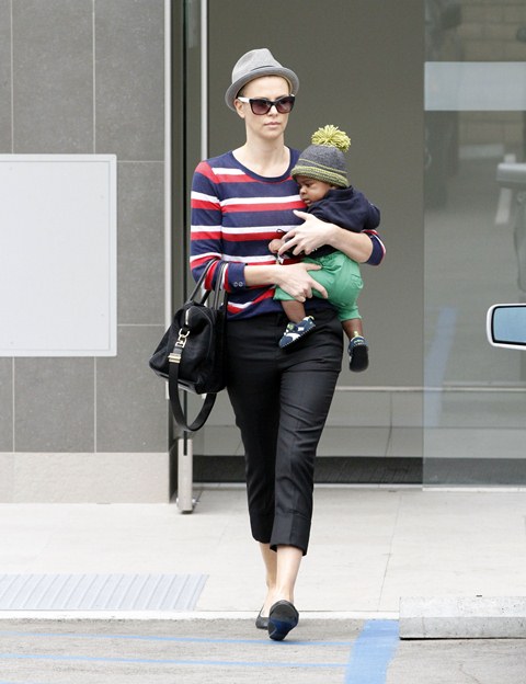 Charlize Theron took Jackson to the doctor’s office today for a checkup. I want those pants.
