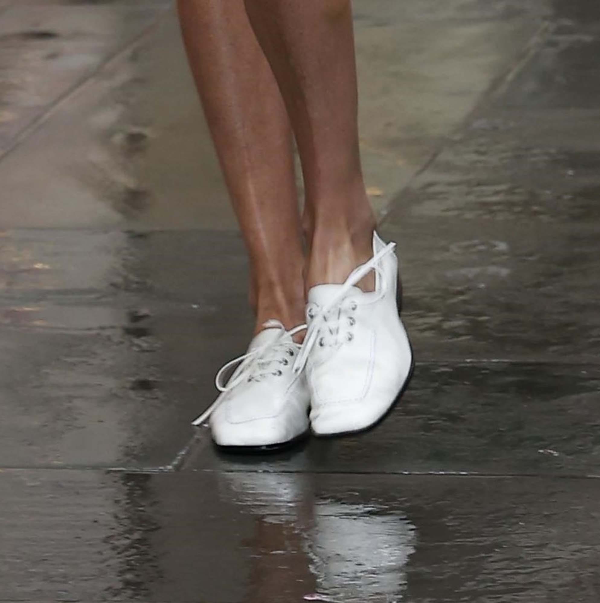 This is Bottega Veneta, head to toe, bag too, under the creative direction now of Louise Trotter who had one of the most impressive debuts during the round of musical chairs between the fashion houses that just went down a few months ago. I am obsessed with this fit, because I’m partial to tutus or skirts that are giving tutu but also everything here just looks so flouncy and slouchy, breezy on the body, plus I love that she’s styled it just like it was on the runway, with flats. Technically these belong to the jazz shoe trend (like the classic Repetto Zizi) only softer, making them a hybrid, at least in my opinion, between a derby and a sneakerina.