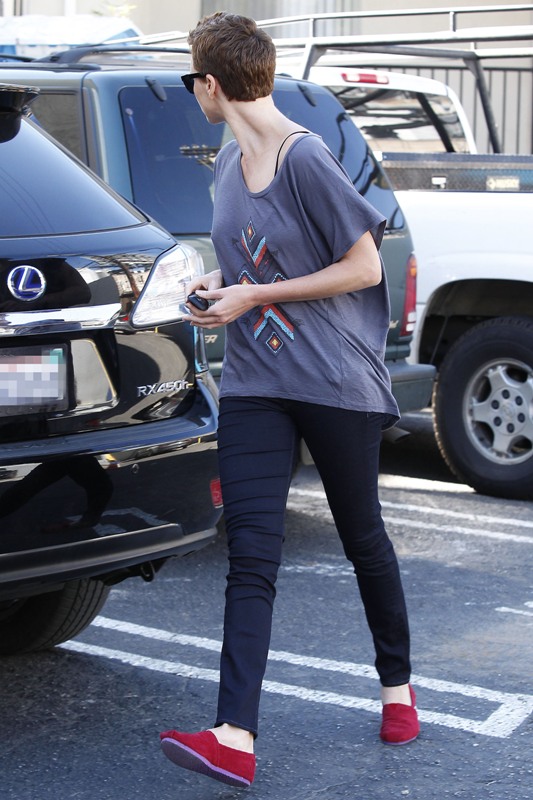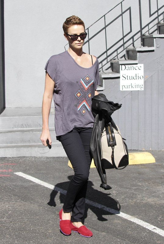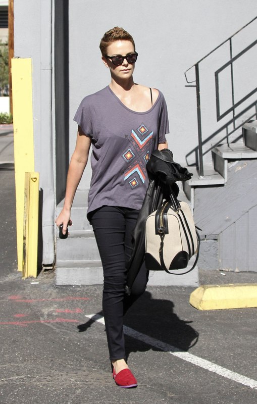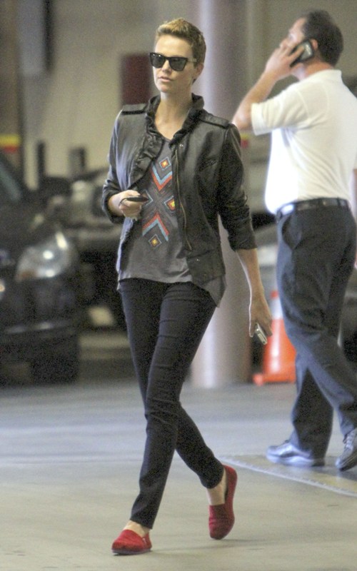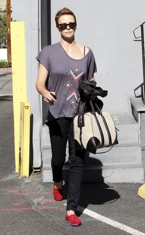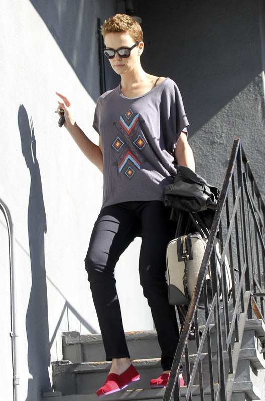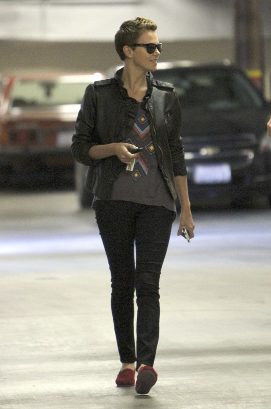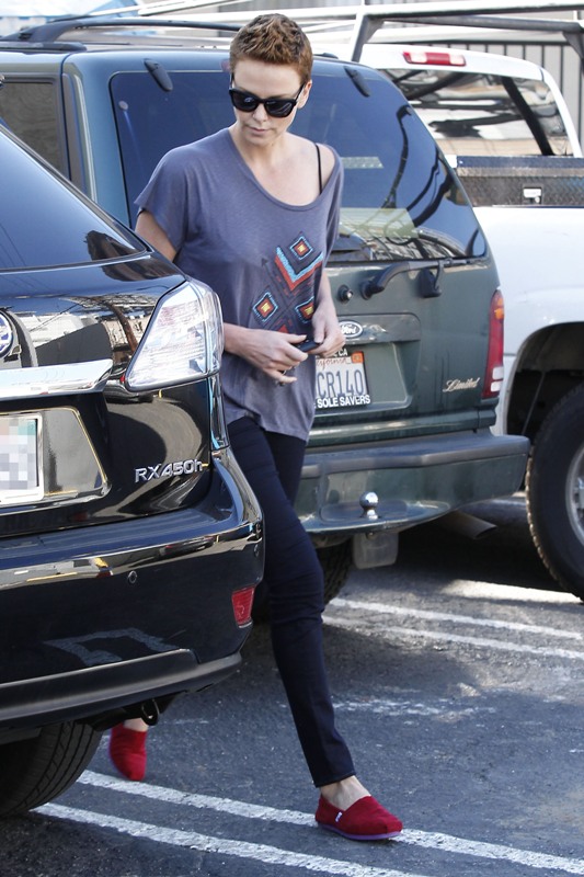 Charlize Theron is growing her hair out after Mad Max. It’s long enough now to push up into a faux-hawk. If only we could all look this great in a faux-hawk. This is hair porn. This is true hair porn. For those who cannot wear short hair without having it stick up like a porcupine, this is the porn of the hair. I might want her to be like this for a long time. I might never want to see it by her shoulders again.