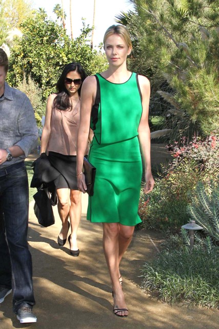 Also attached – Charlize at the Variety event, also in Palm Springs, the next day, wearing the hell out of that green dress with the boring shape.