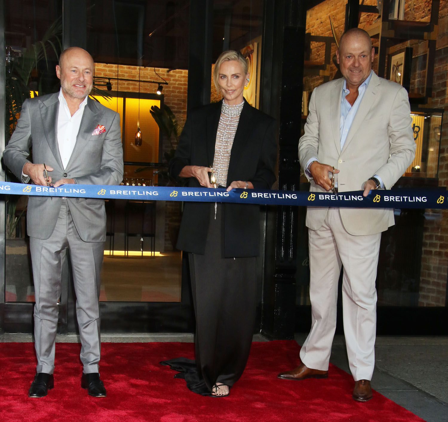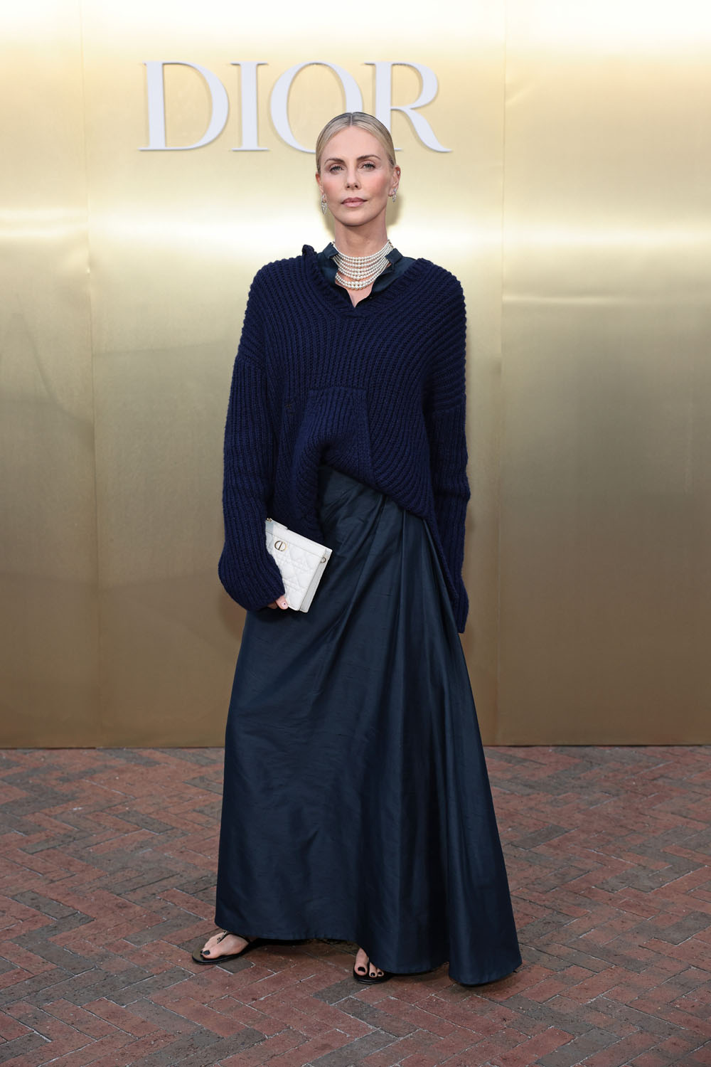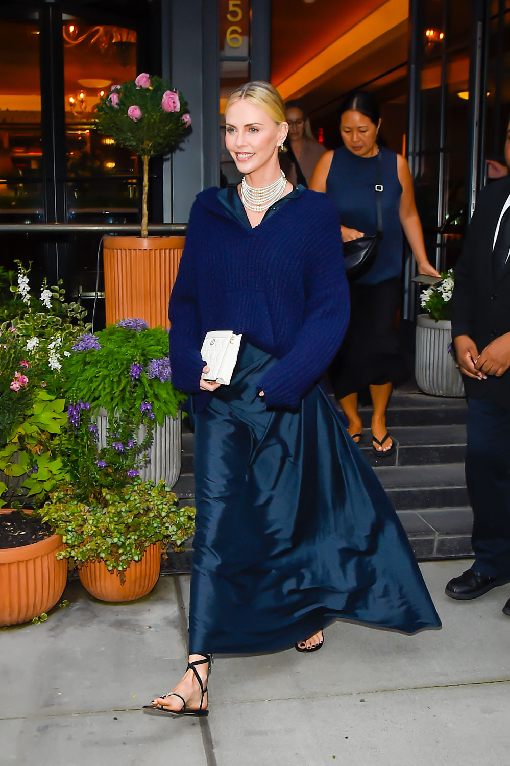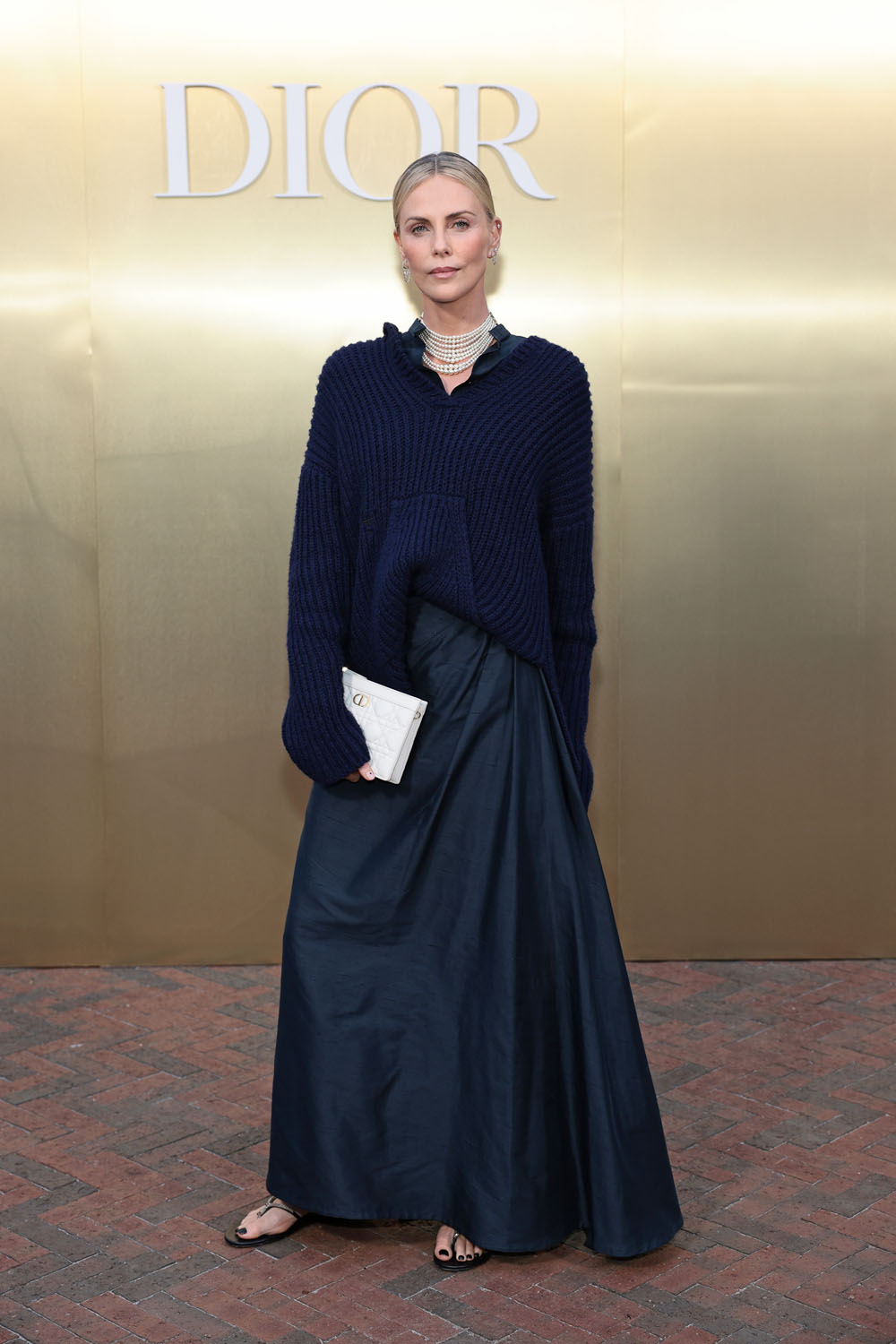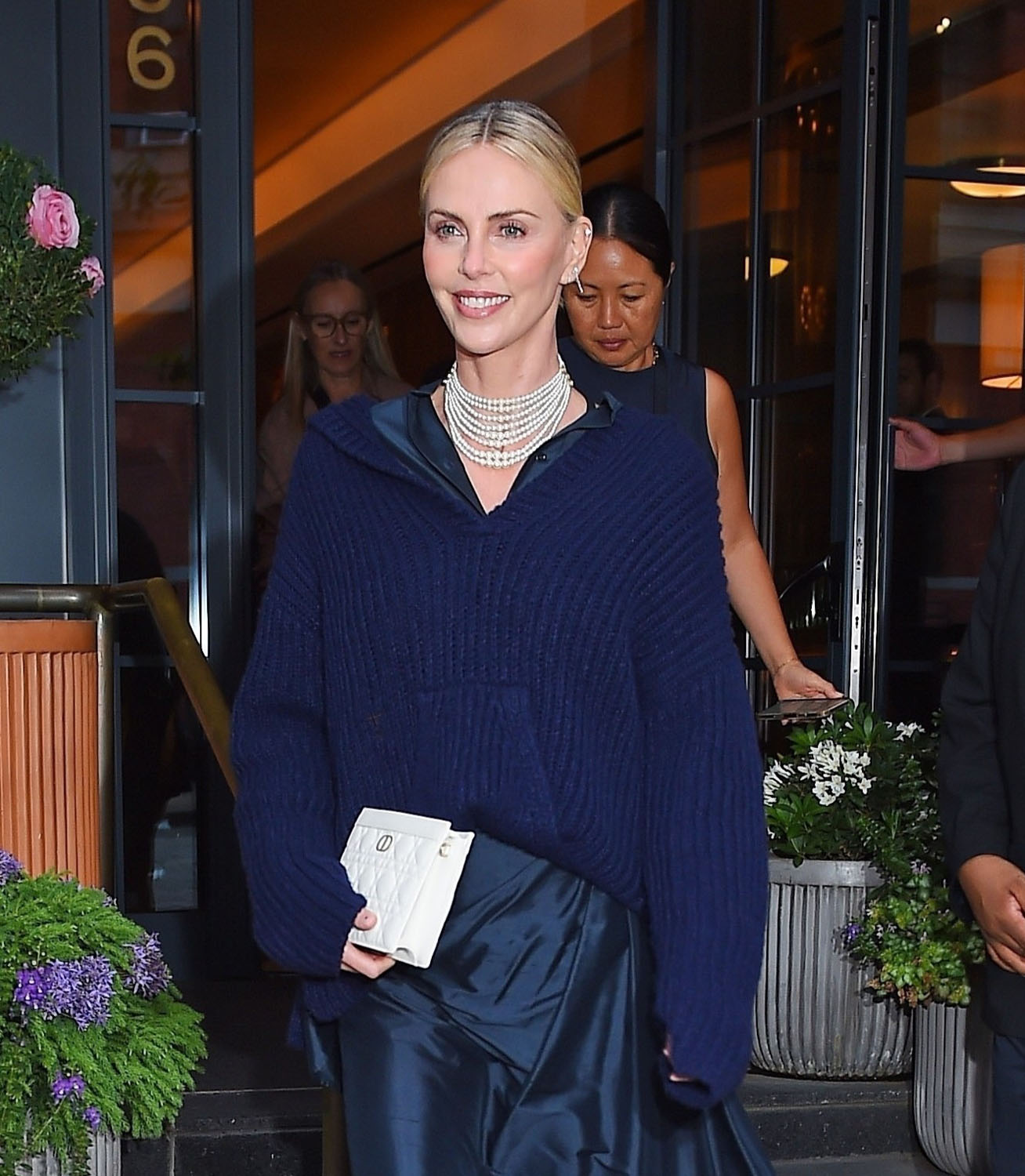 Like Charlize Theron who was at two events this week and serving pearls for both. First at the Breitling launch on Wednesday (she’s an ambassador), Charlize showed up in Givenchy. It’s a black blazer over a black skirt and she looks great…