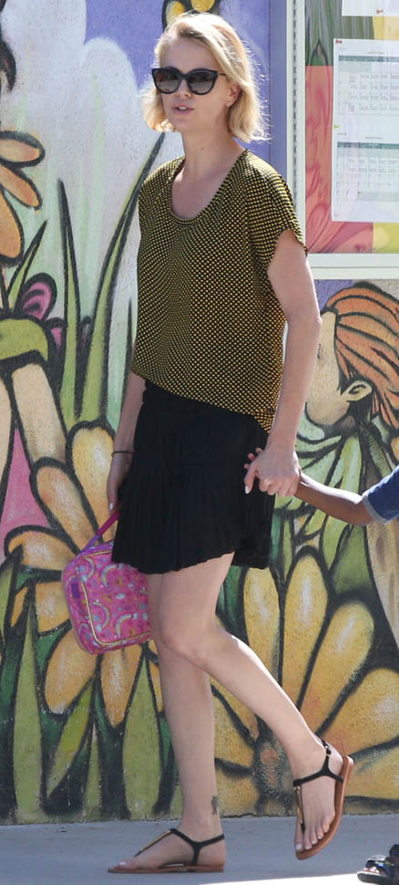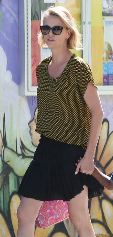 I saw these new shots of Charlize Theron out in LA yesterday wearing a really, really great top, I want it really, really bad, and realised we haven’t talked yet about the news that she’s adopted a daughter. TMZ had the exclusive a few days ago. The baby girl is African-American and is called August. I’ll play Duana here and analyse the name. Most people are familiar with August as a boy’s name. Unless, of course, you’ve read The Secret Life Of Bees. August Boatright, right?