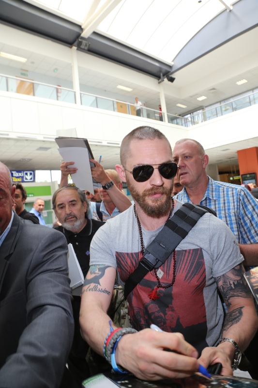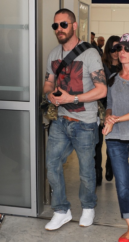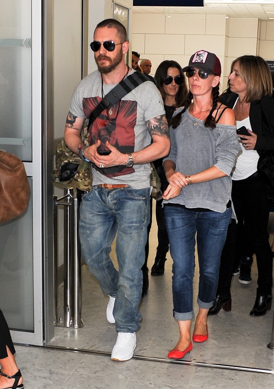 Attached - Charlize in Cannes and Tom Hardy arriving at the Nice airport yesterday ahead of the festival.