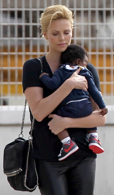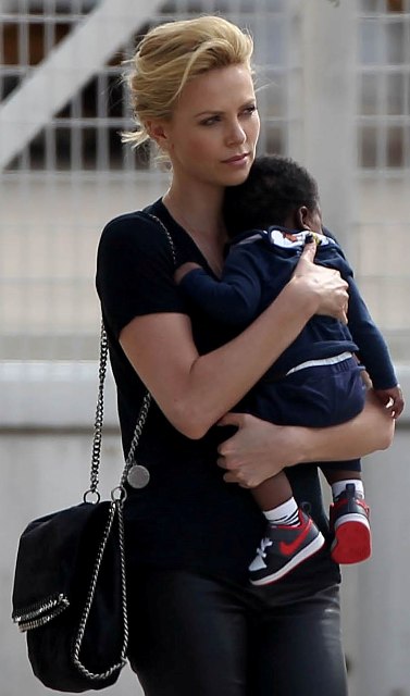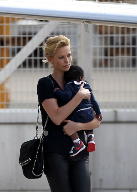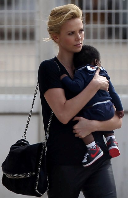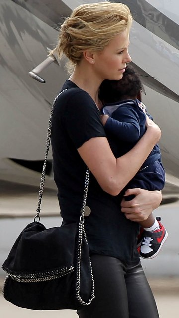 Charlize Theron’s mom style is not unlike Victoria Beckham’s it seems. But look at that bag. THAT BAG. Is that her baby bag? Is that the bag she throws all her baby sh-t in?