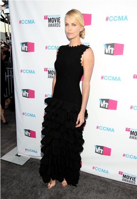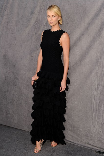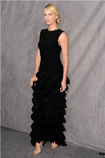 Charlize Theron has a way of making bows and ruffles and tiers and sh-t that would look tacky on anyone else look really really great. It makes up for her sh-tty footwear.