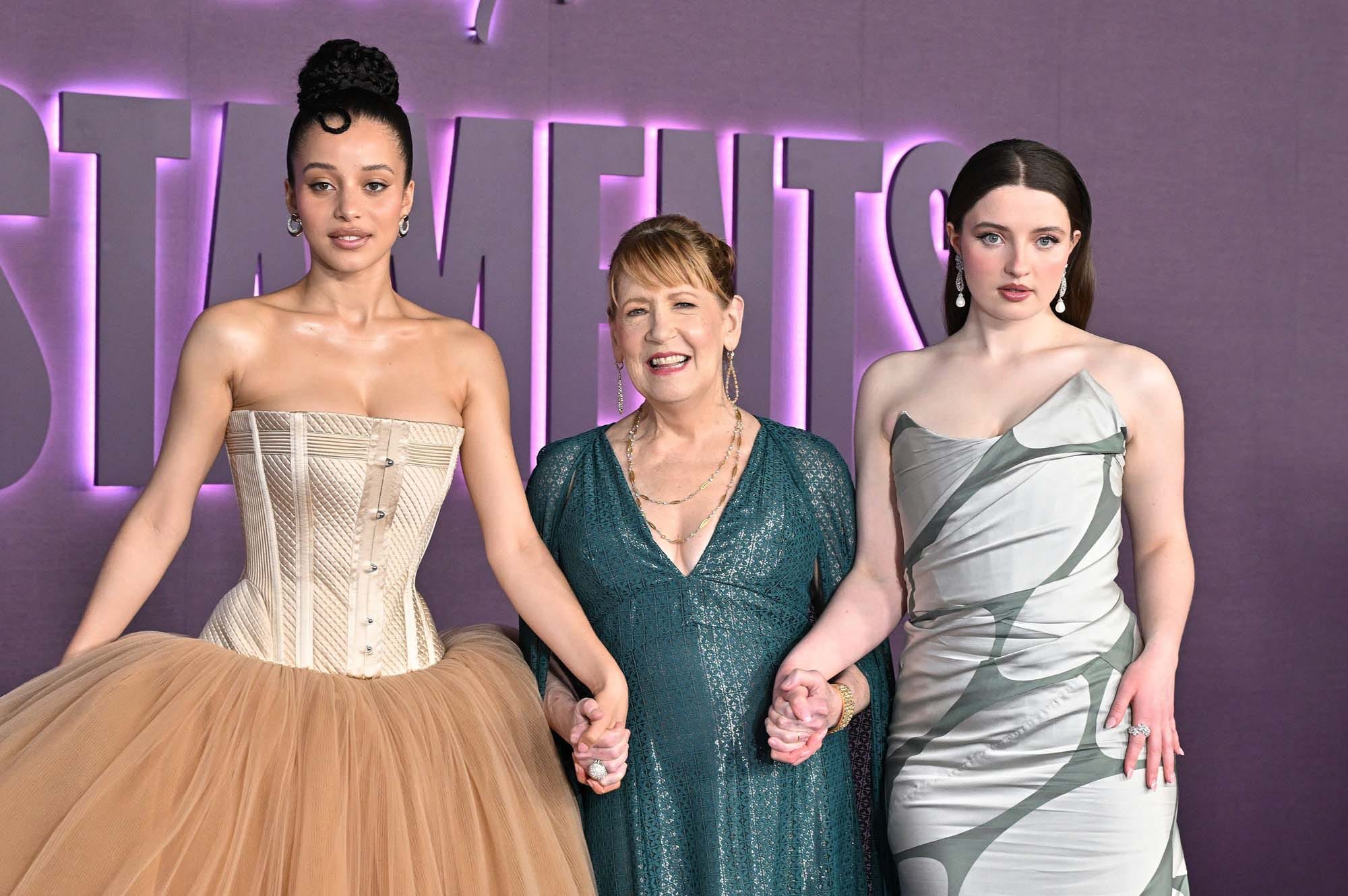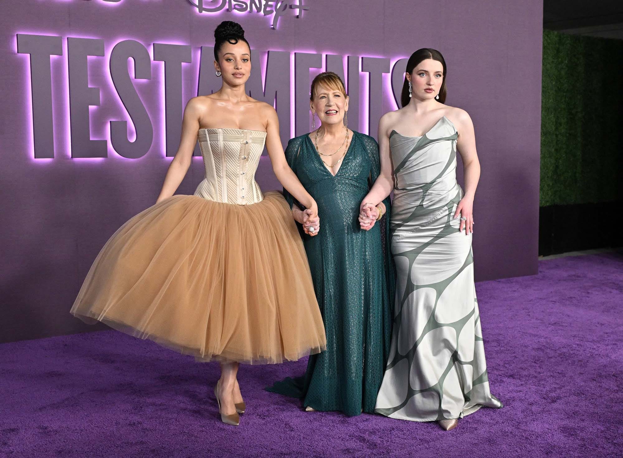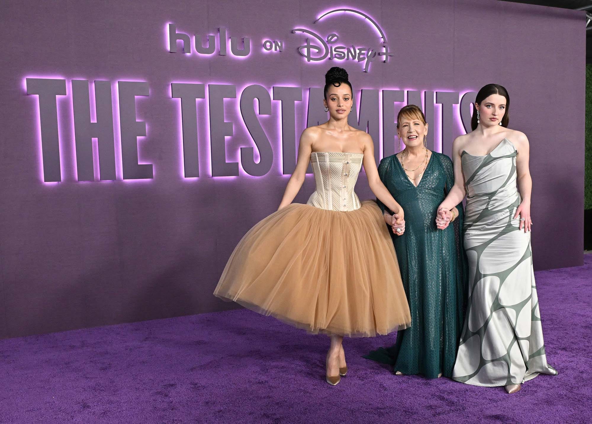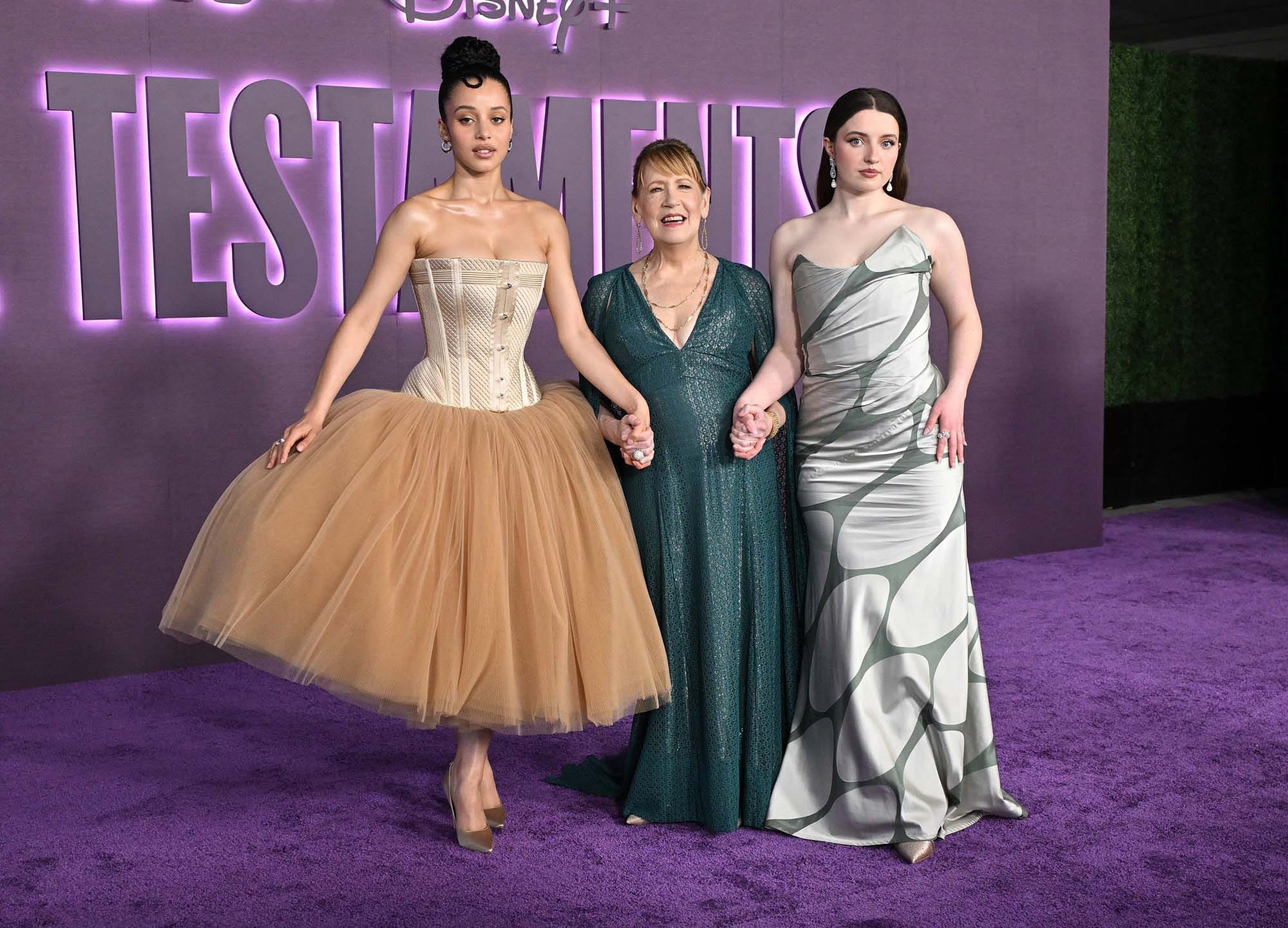 Chase Infiniti, Ann Dowd and Lucy Halliday attend the premiere of Hulu's "The Testaments" at Academy Museum of Motion Pictures on March 31, 2026 in Los Angeles, California